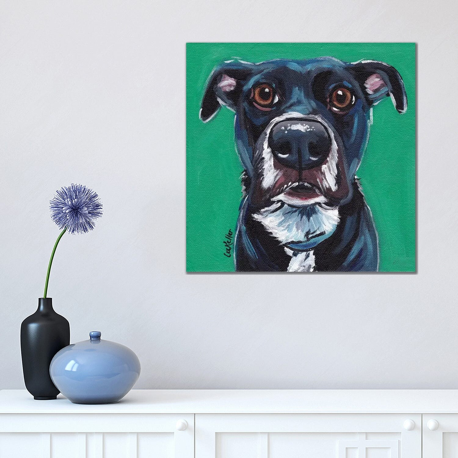 iCanvas "Expressive Black Dog on Emerald" by Hippie Hound Studios Canvas Print