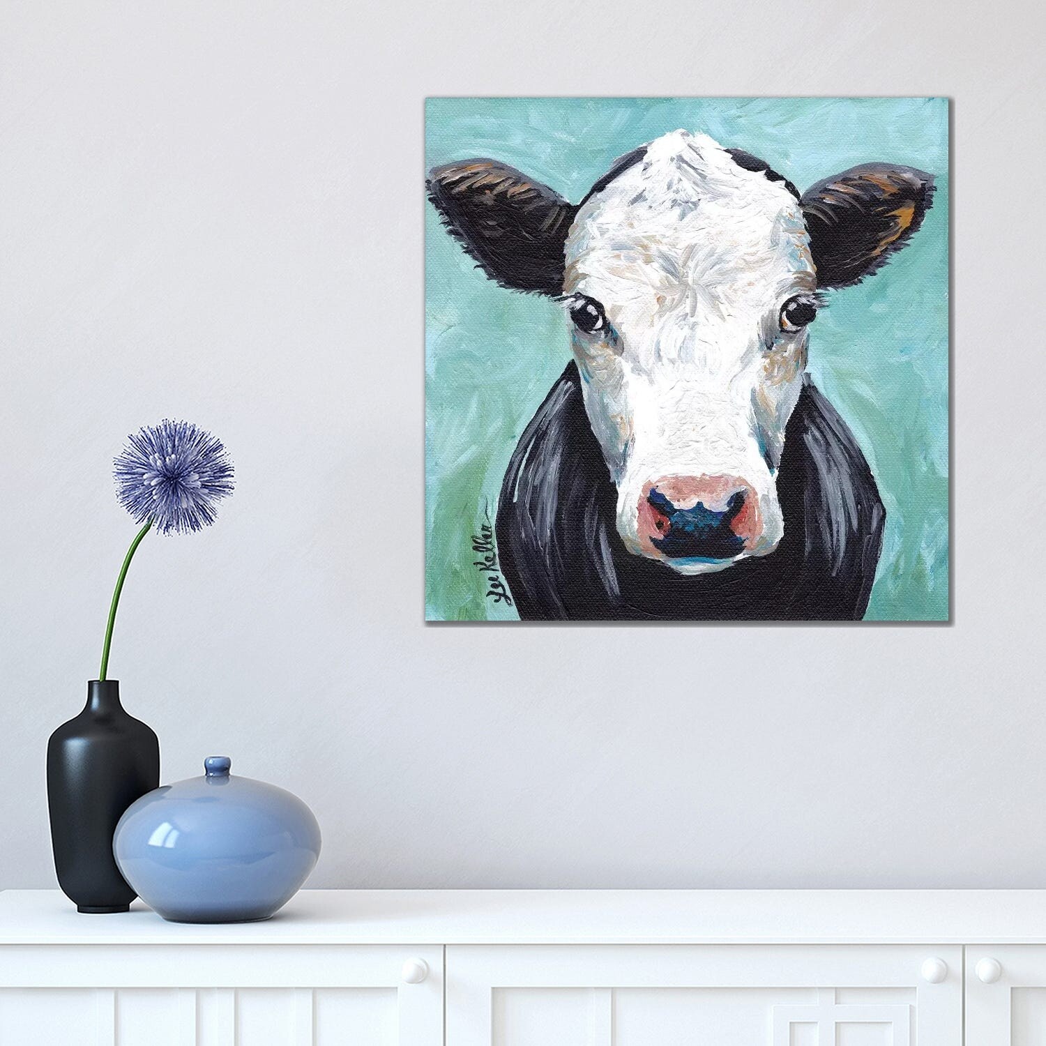 iCanvas "Cow Miss Moo Moo Turquoise" by Hippie Hound Studios Canvas Print