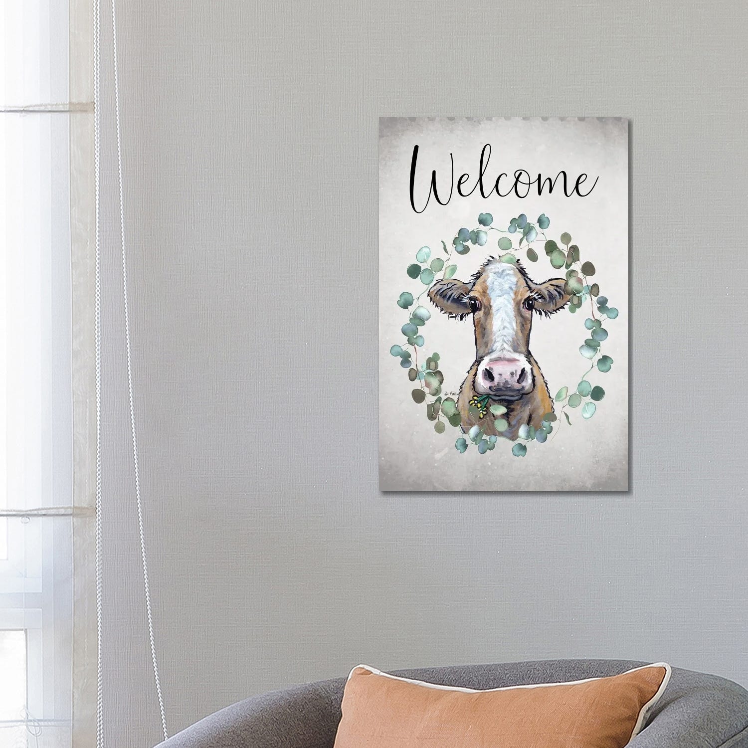 iCanvas "Cow Welcome Sign, Farmhouse Cow Art" by Hippie Hound Studios Canvas Print