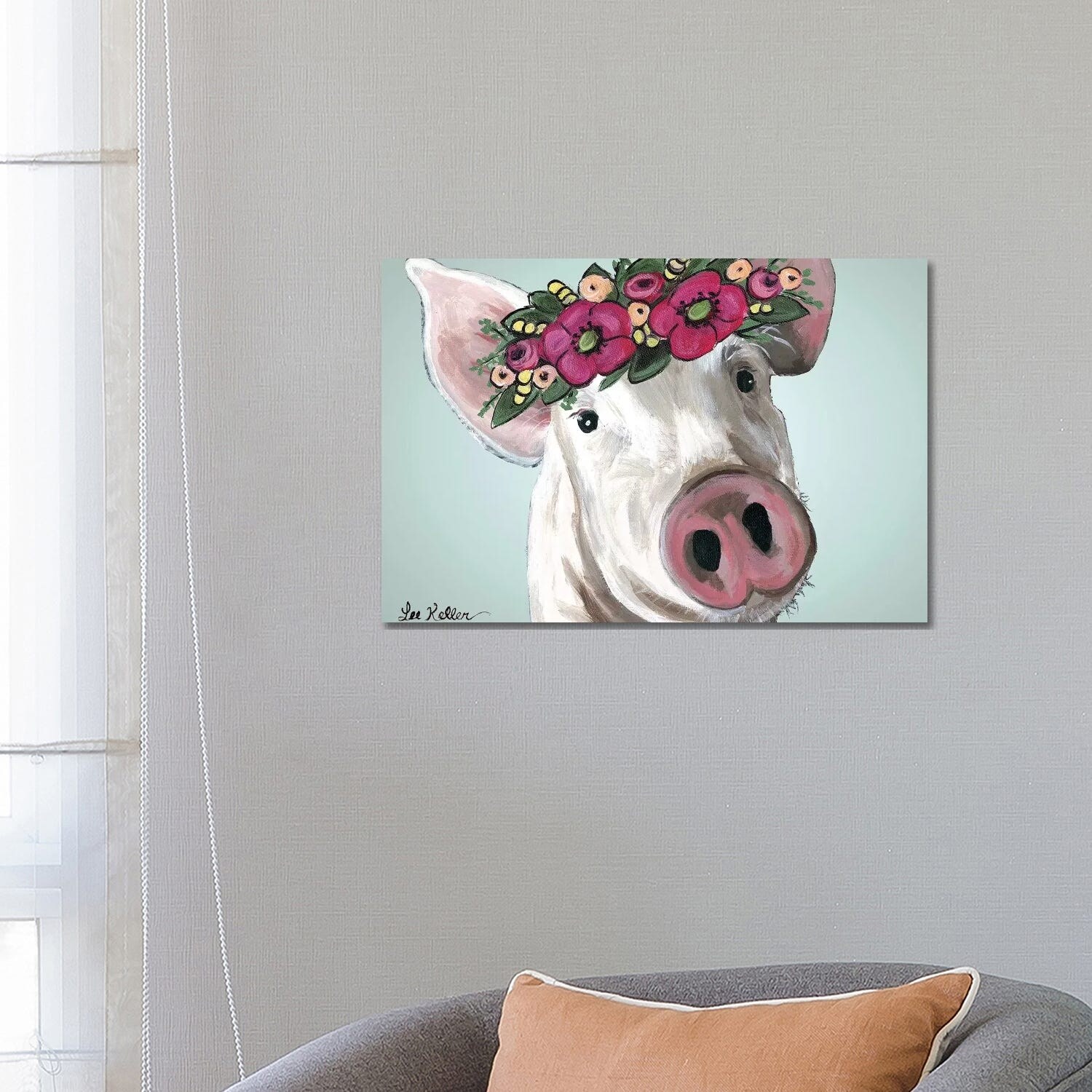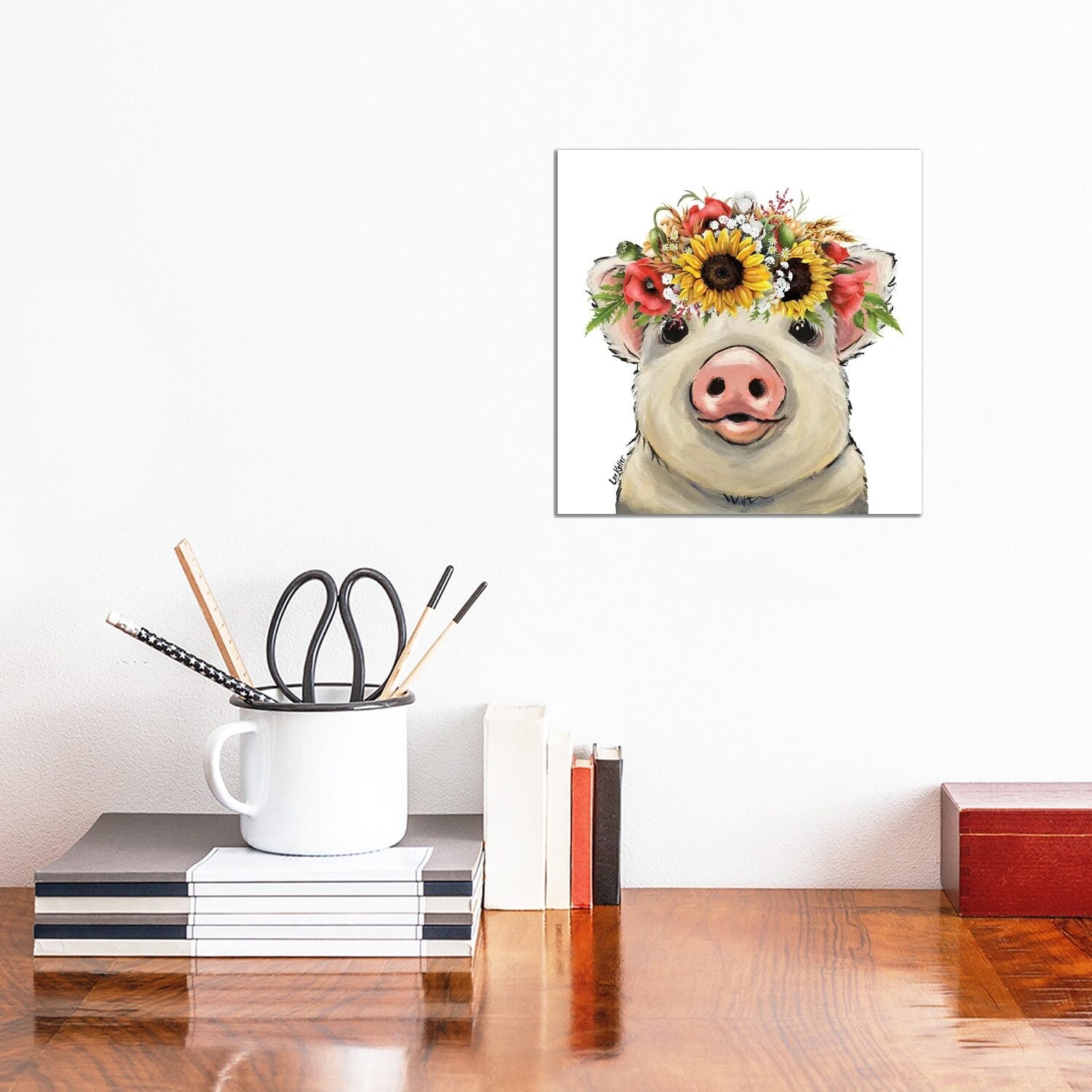 iCanvas "Pig Petunia Bold Flower Crown" by Hippie Hound Studios Canvas Print