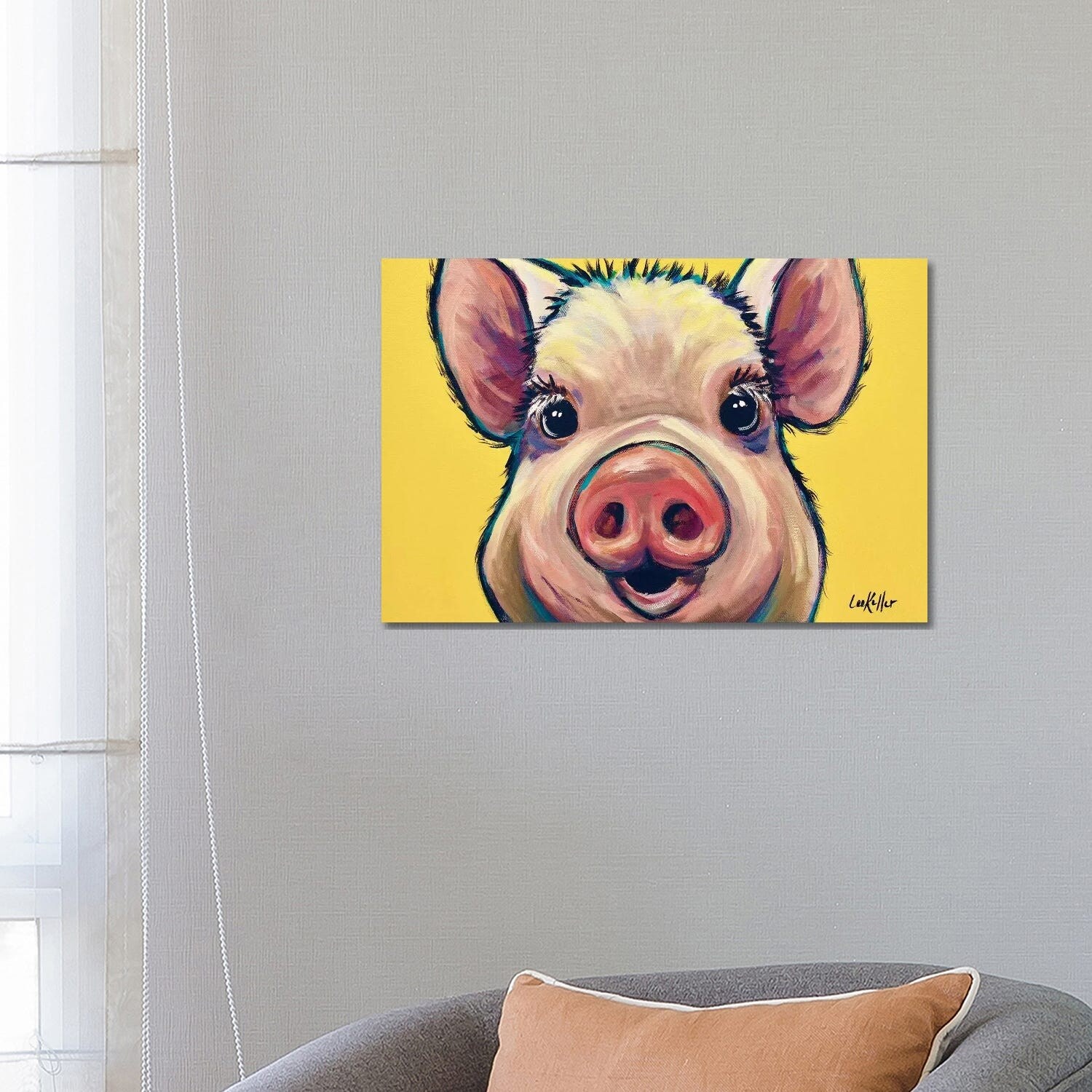 iCanvas "Marmalade The Pig on Yellow" by Hippie Hound Studios Canvas Print