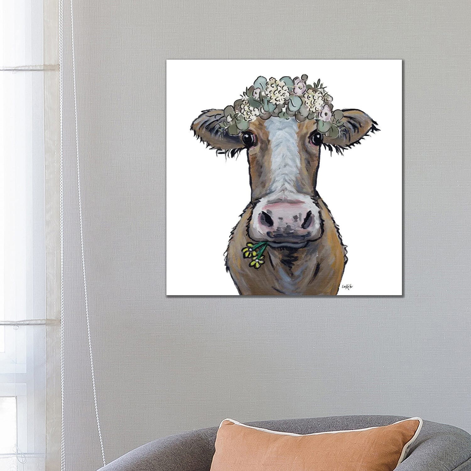 iCanvas "Cow - Georgia Flower Crown" by Hippie Hound Studios