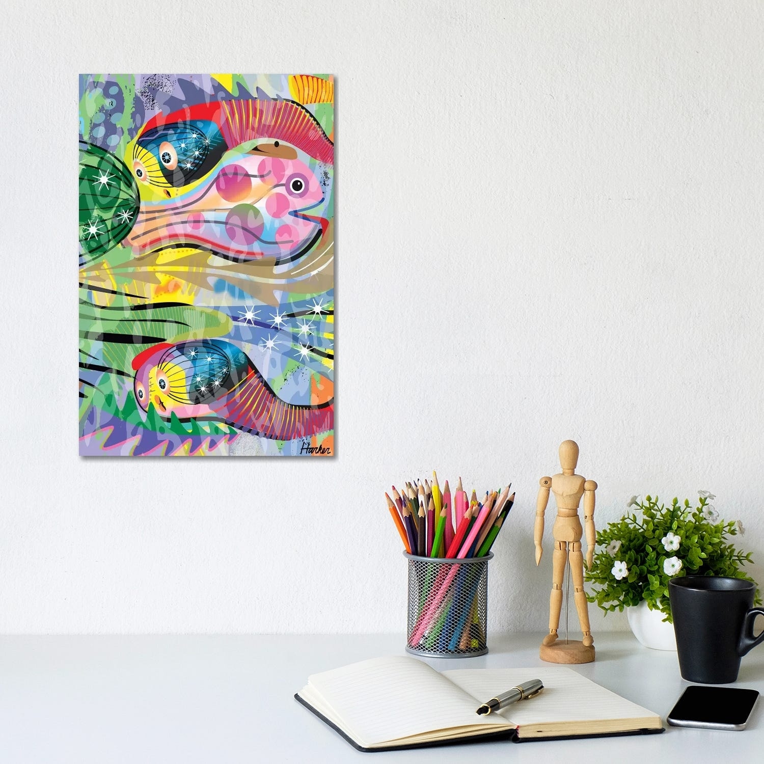 iCanvas "Hippy Fish in Rainbow" by Charles Harker Canvas Print