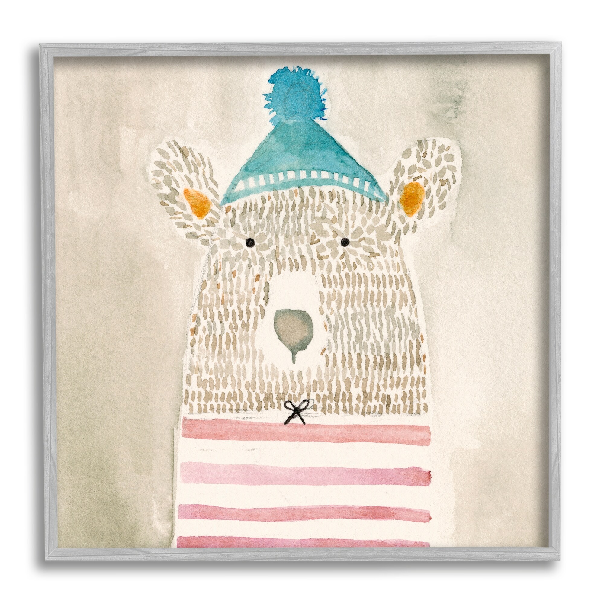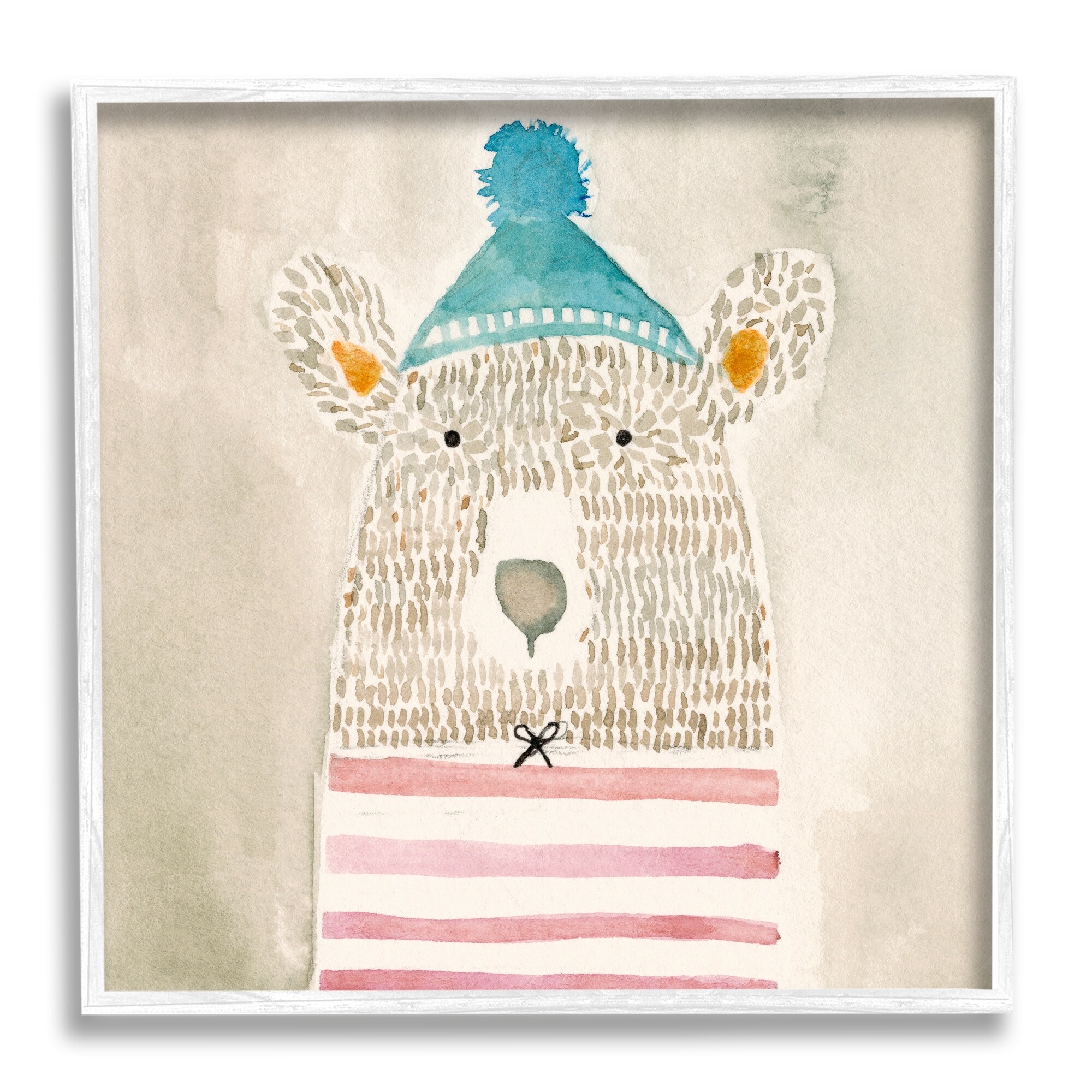 Stupell Industries Playful Bear Portrait Hipster Beanie Red Stripes Framed Wall Art - Brown