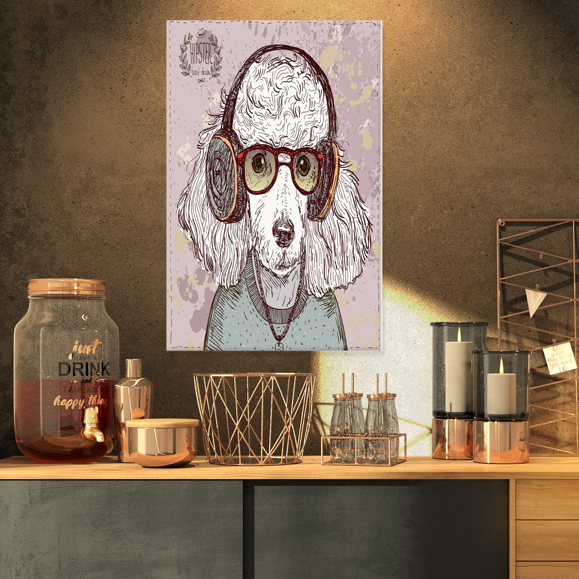Designart "Funny Hipster Poodle with Glasses" Contemporary Animal Art Canvas