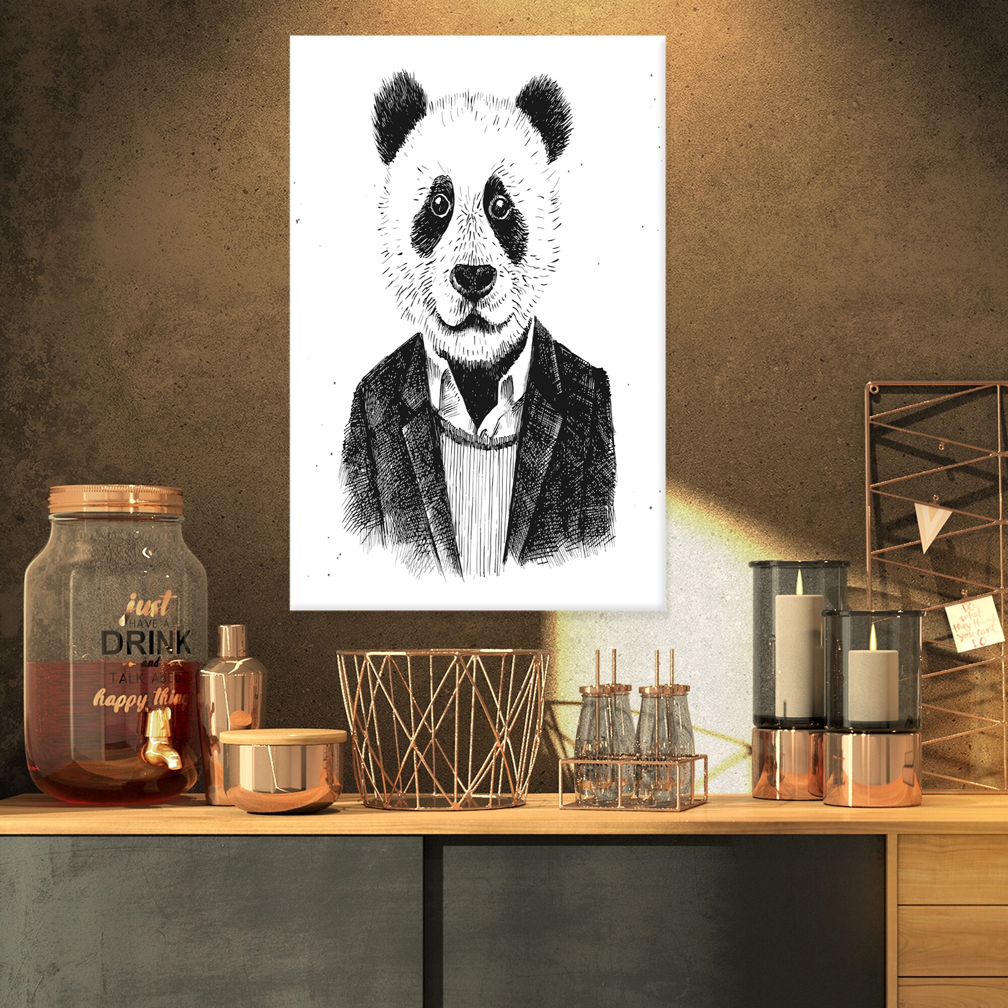 Designart "Funny Hipster Panda Black White" Animal Canvas Art Print