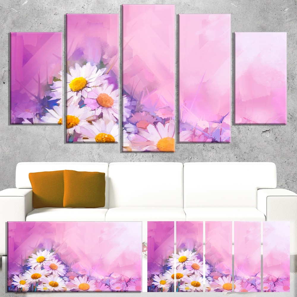 Designart "Bouquet of White Gerbera and Daisy" Flower Canvas Print Artwork