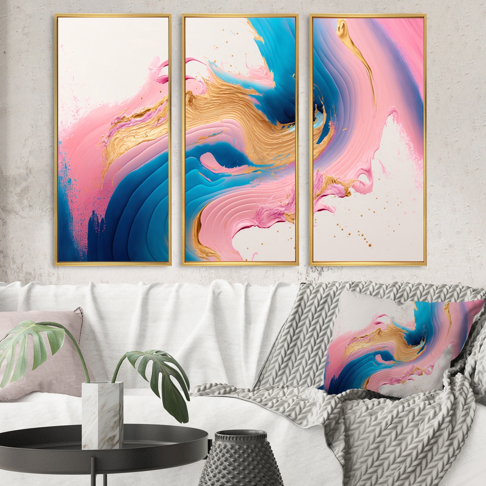 Designart "Pink And Gold Waves " Modern Spiral Framed Canvas Art Print - 3 Panels