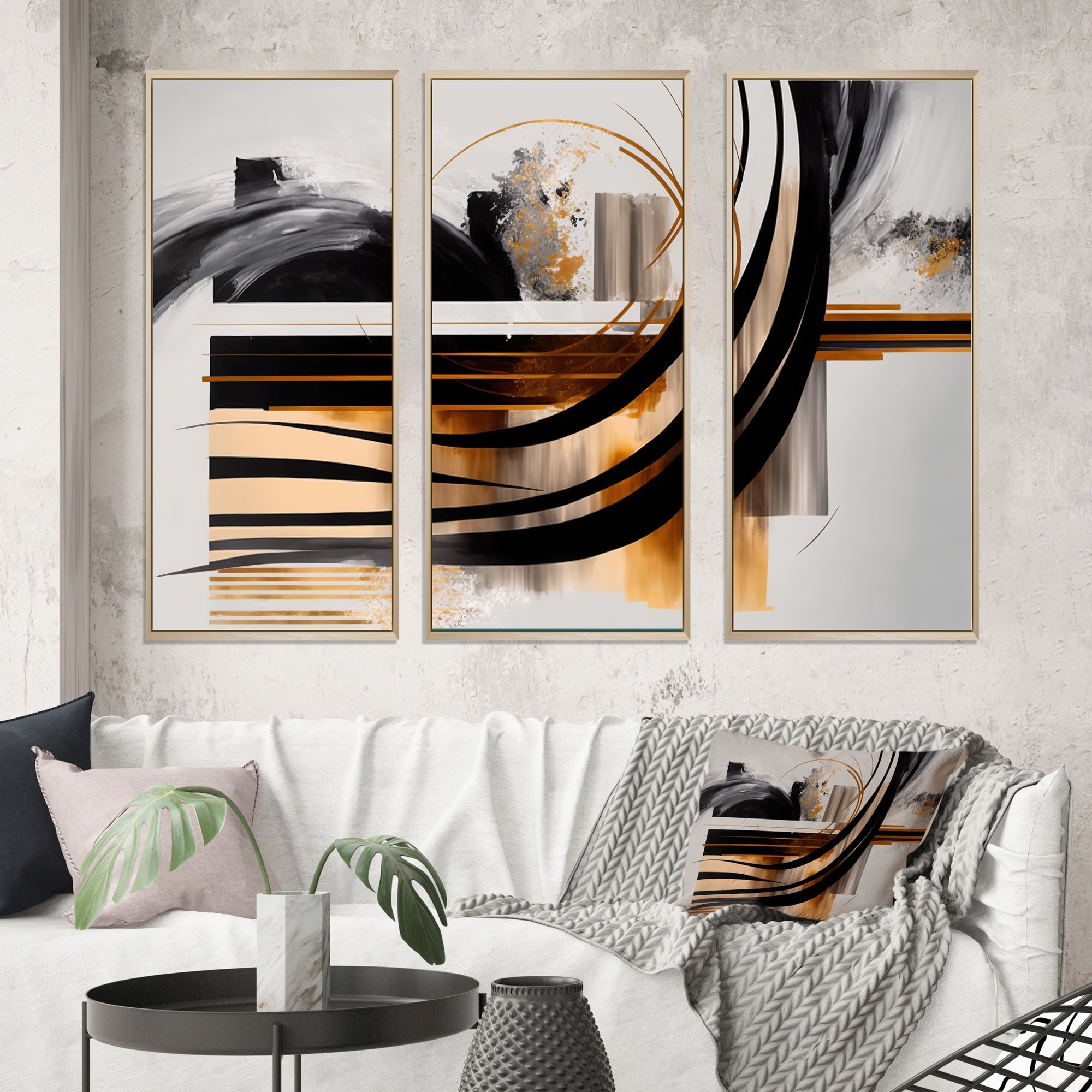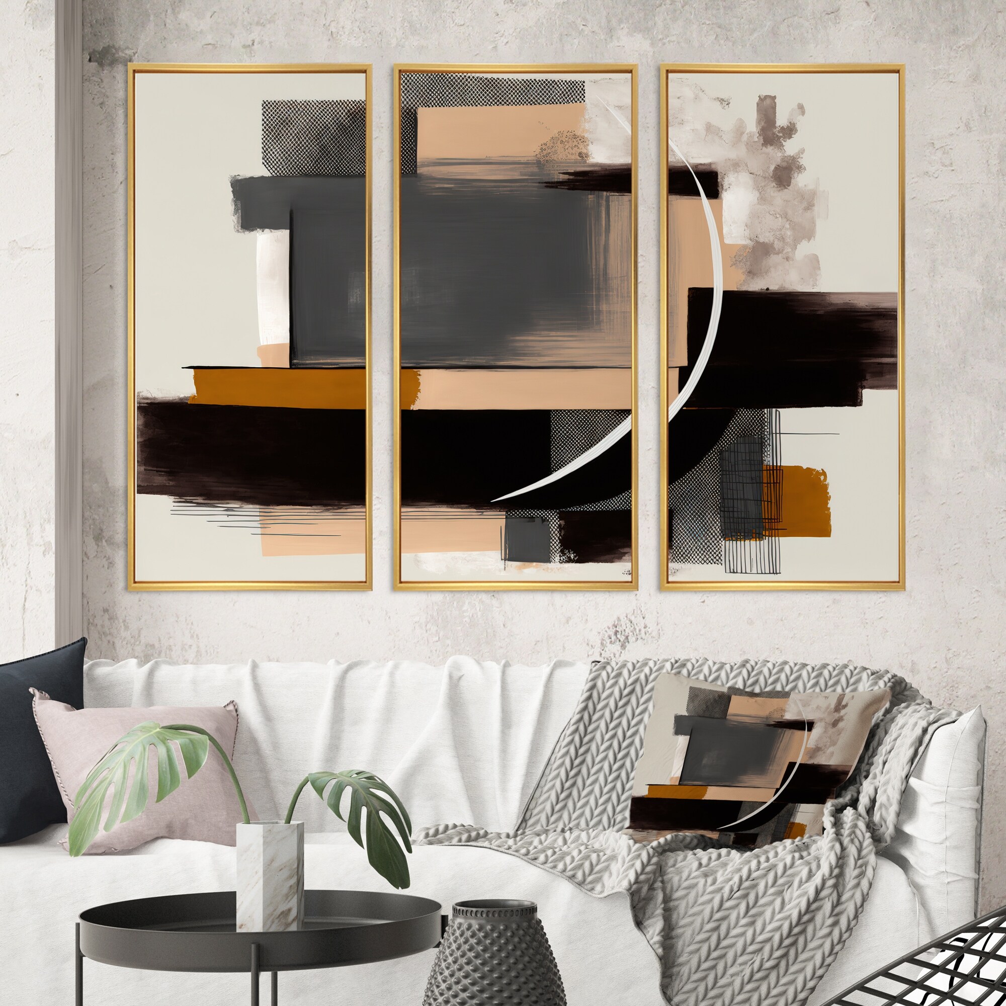 Designart "Abstract Transitional Modern Shapes III" Modern Shapes Transitional Framed Canvas Art Print - 3 Panels