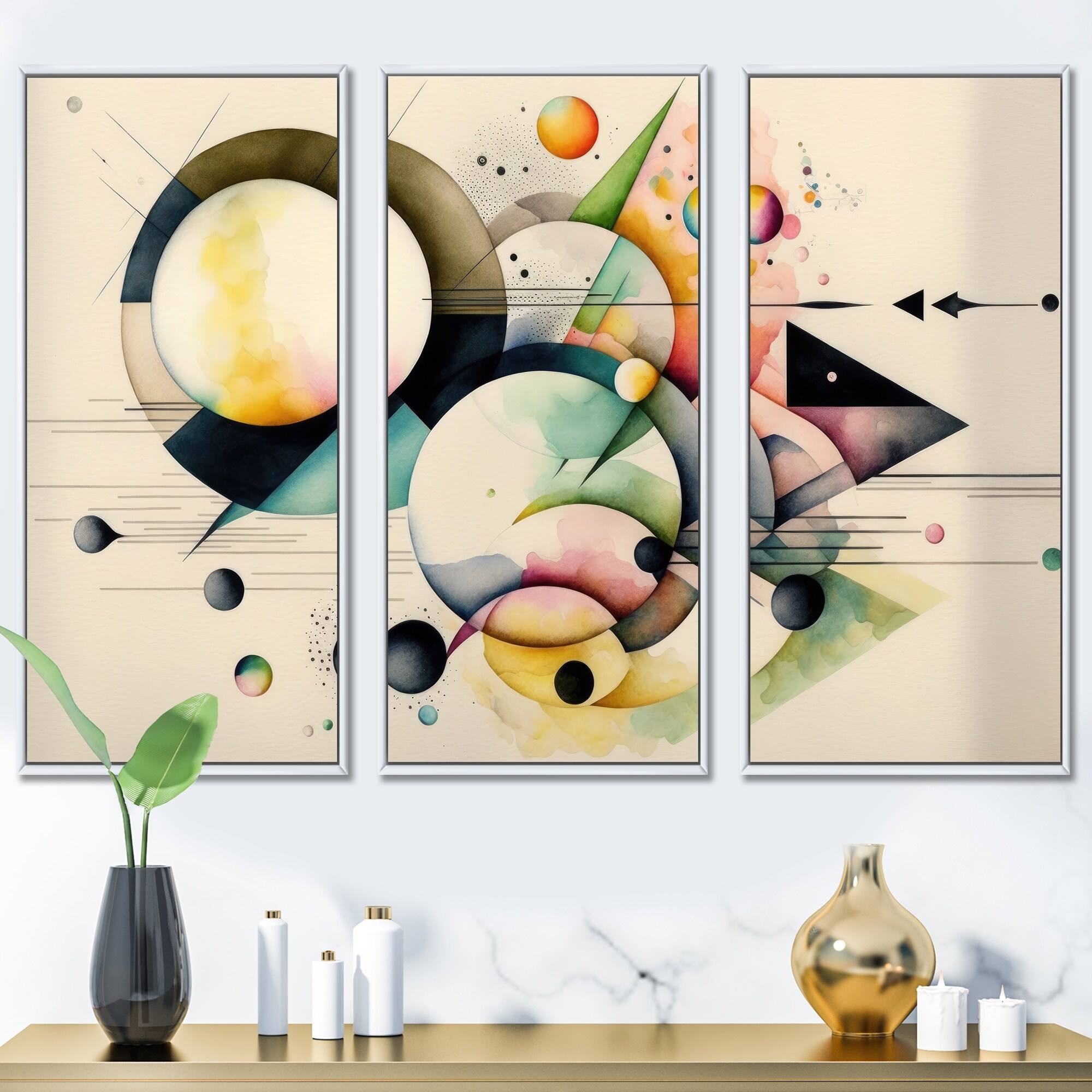 Designart "Pastel Minimalist Multi Shape Art I" Modern Geometric Framed Canvas Art Print - 3 Panels