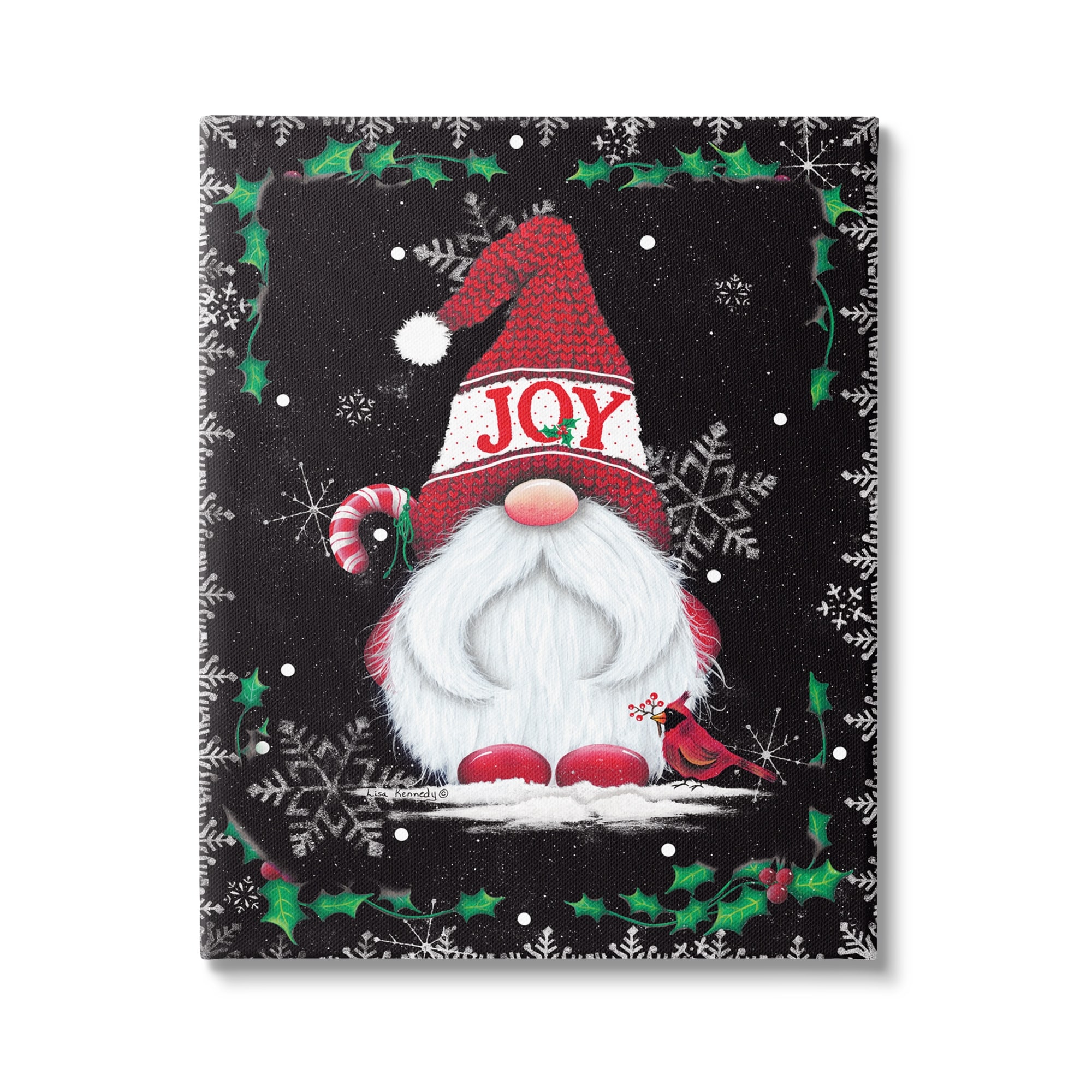 Stupell Industries Joyful Red Gnome & Cardinal Holly Botanical Border Canvas Wall Art
