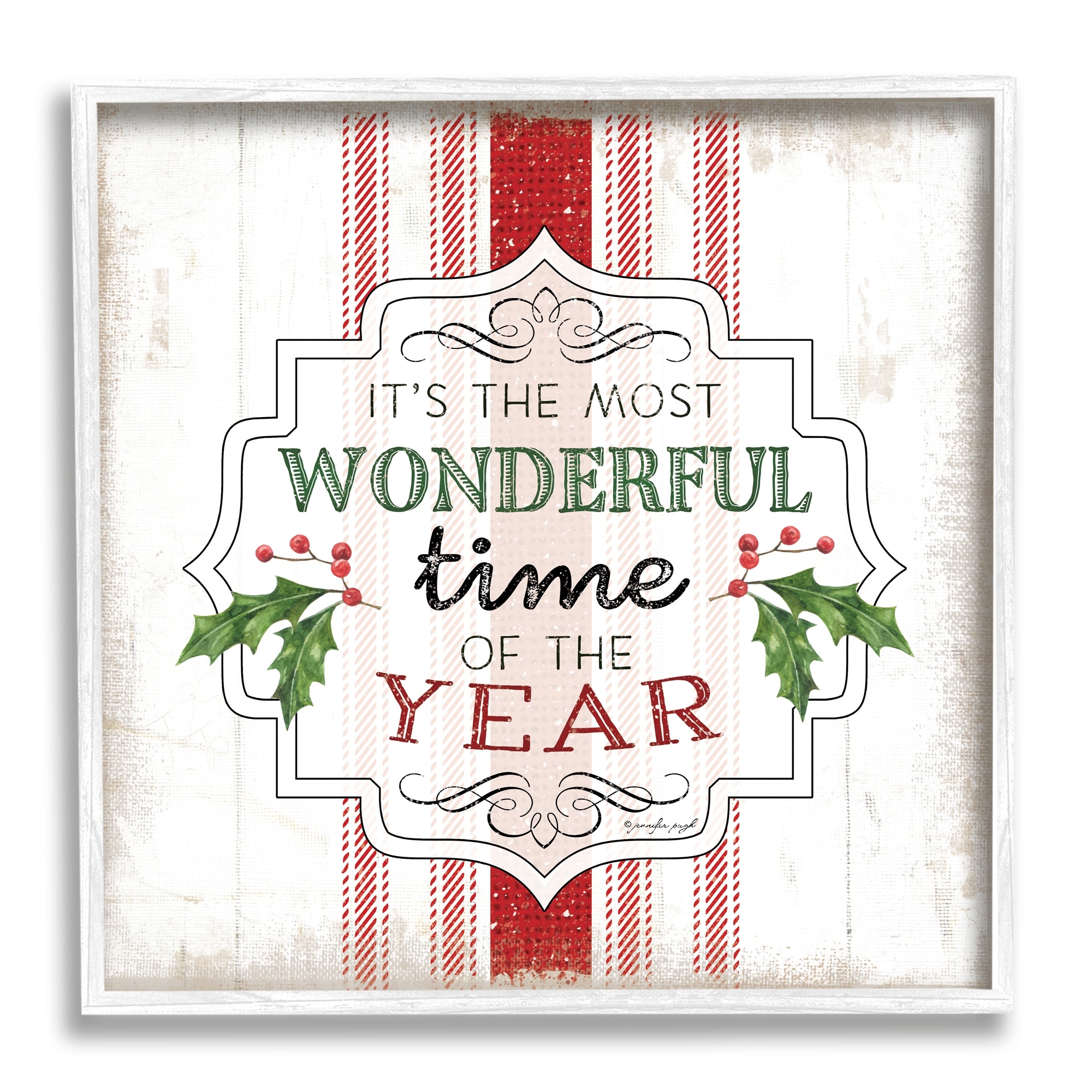 Stupell Festive Holiday Quote Holly Sprig Rustic Stripes Framed Wall Art - Green