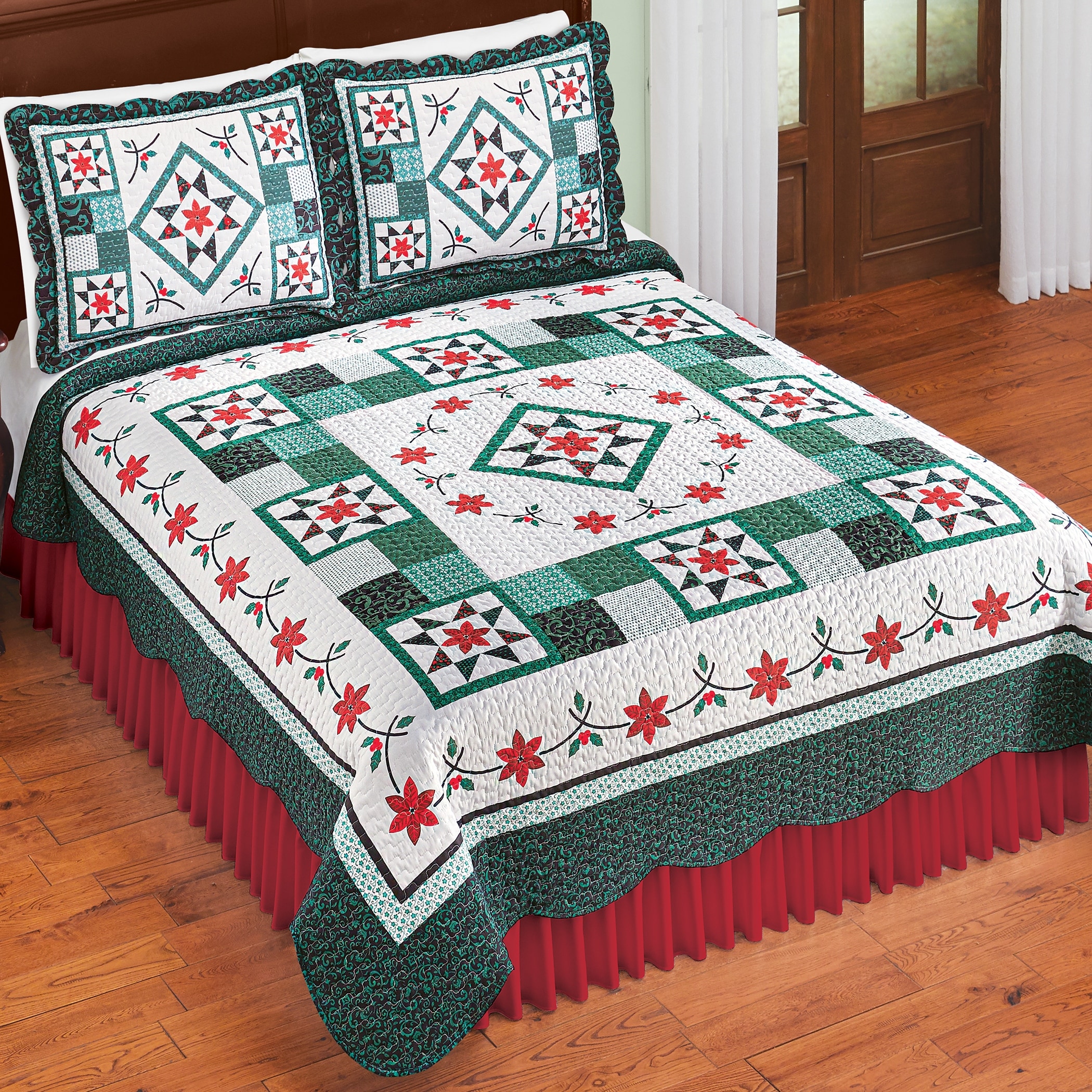 Reversible Poinsettia Star & Holly Patchwork Quilt