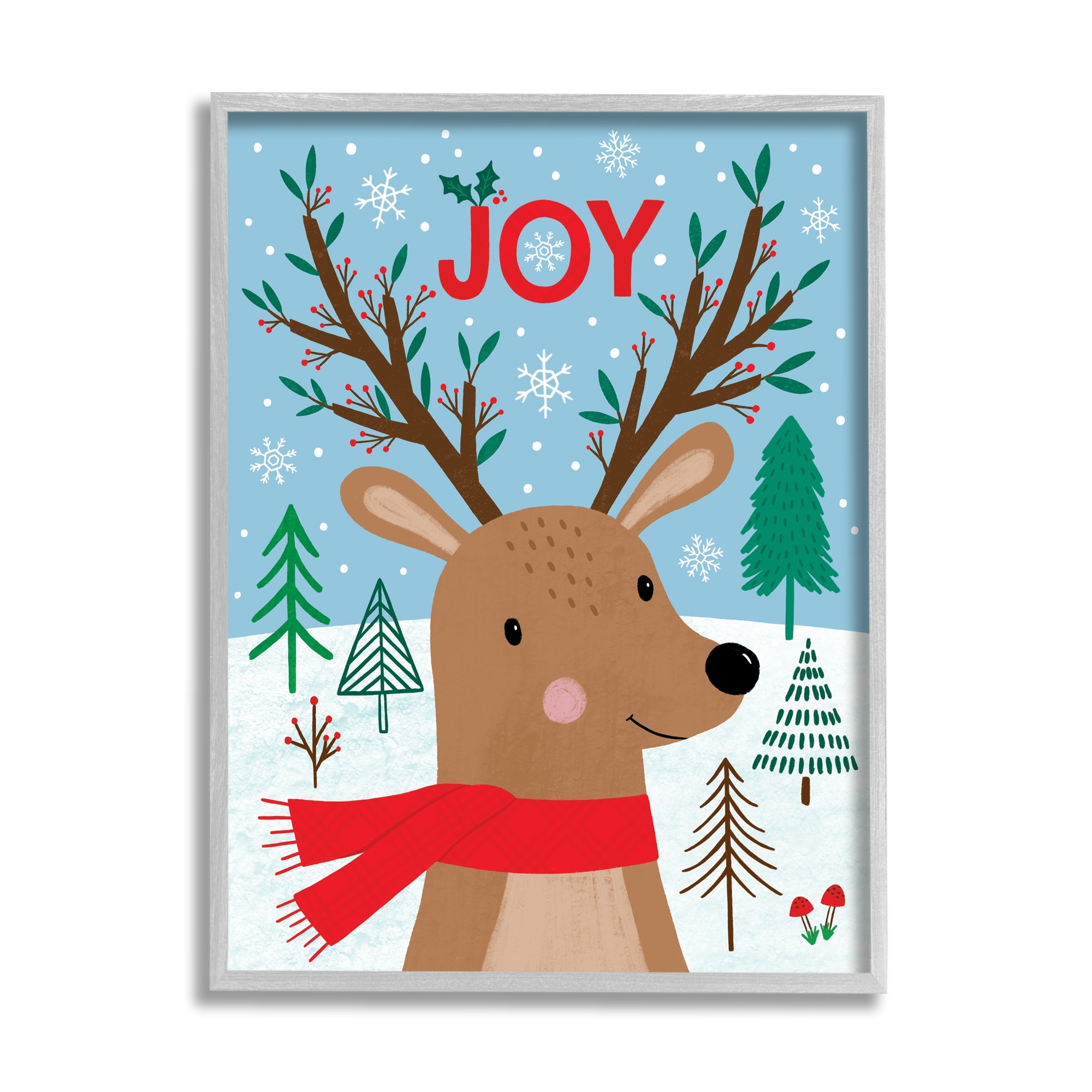 Stupell Red Holly Reindeer Winter Forest Joy Typography Framed Wall Art - Blue