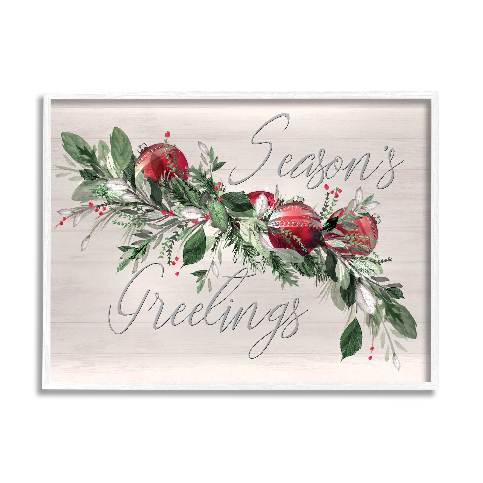 Stupell Festive Red Ornaments Winter Holly Season's Greetings Framed Wall Art - Grey
