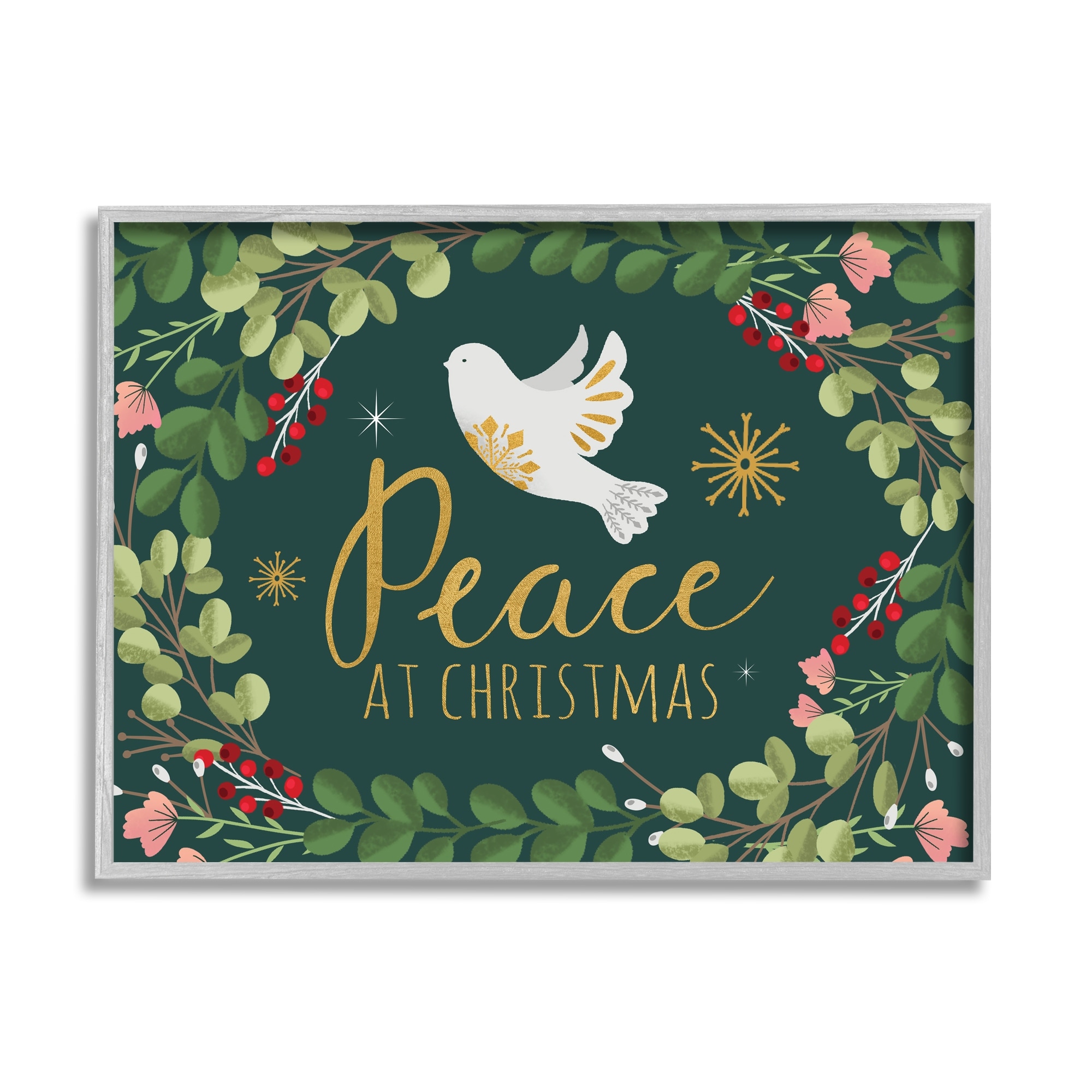 Stupell Industries Peace at Christmas Phrase White Dove Holiday Holly Framed Wall Art - Green