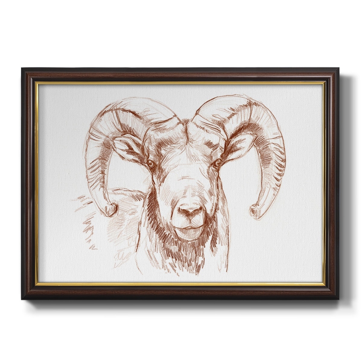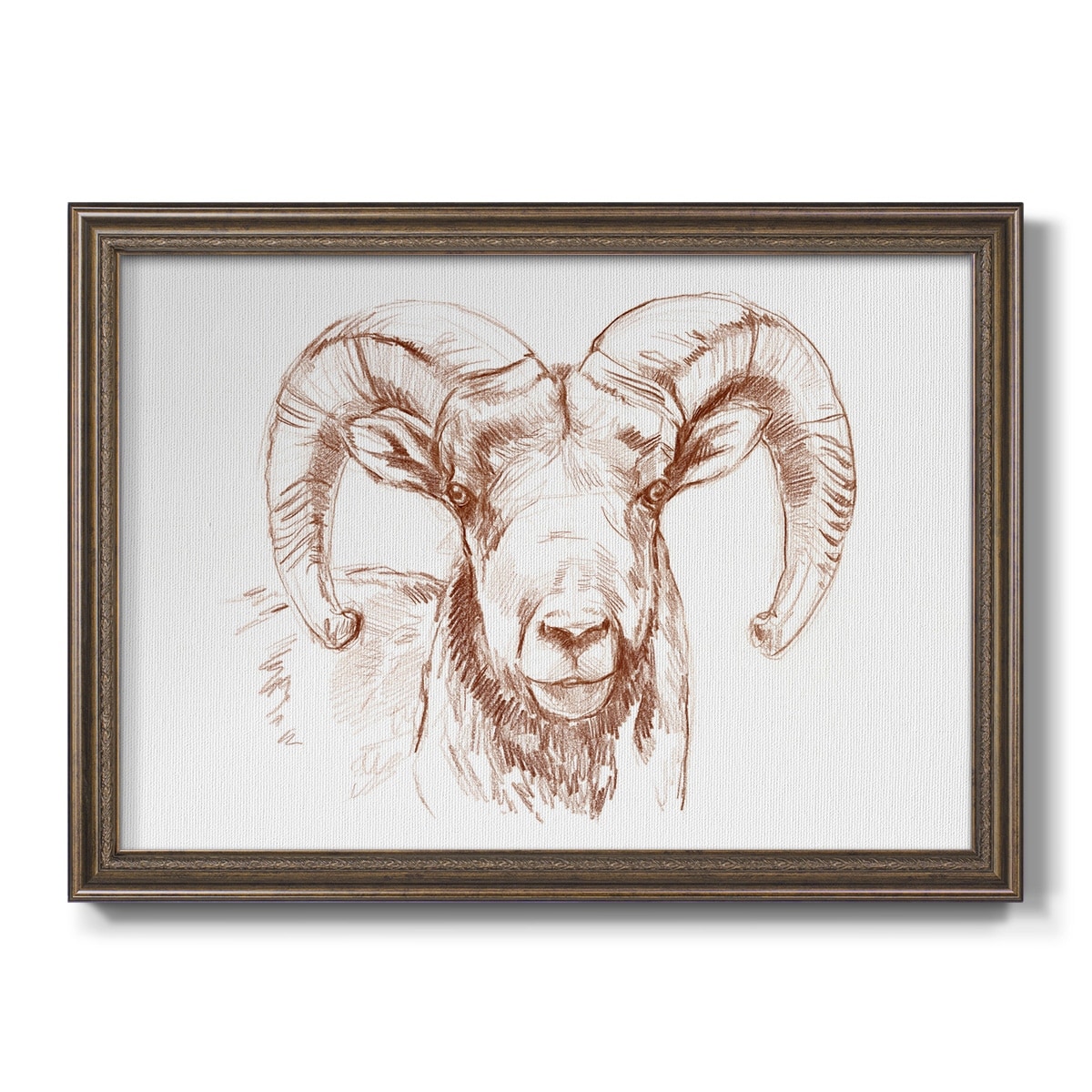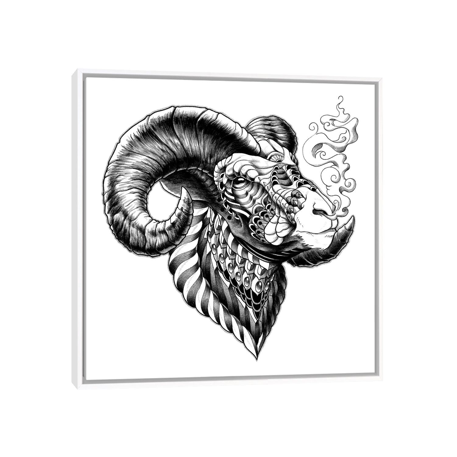 Designart "Portrait Of a Ram With Curled Horn" Nautical & Coastal Framed Canvas Wall Art Print