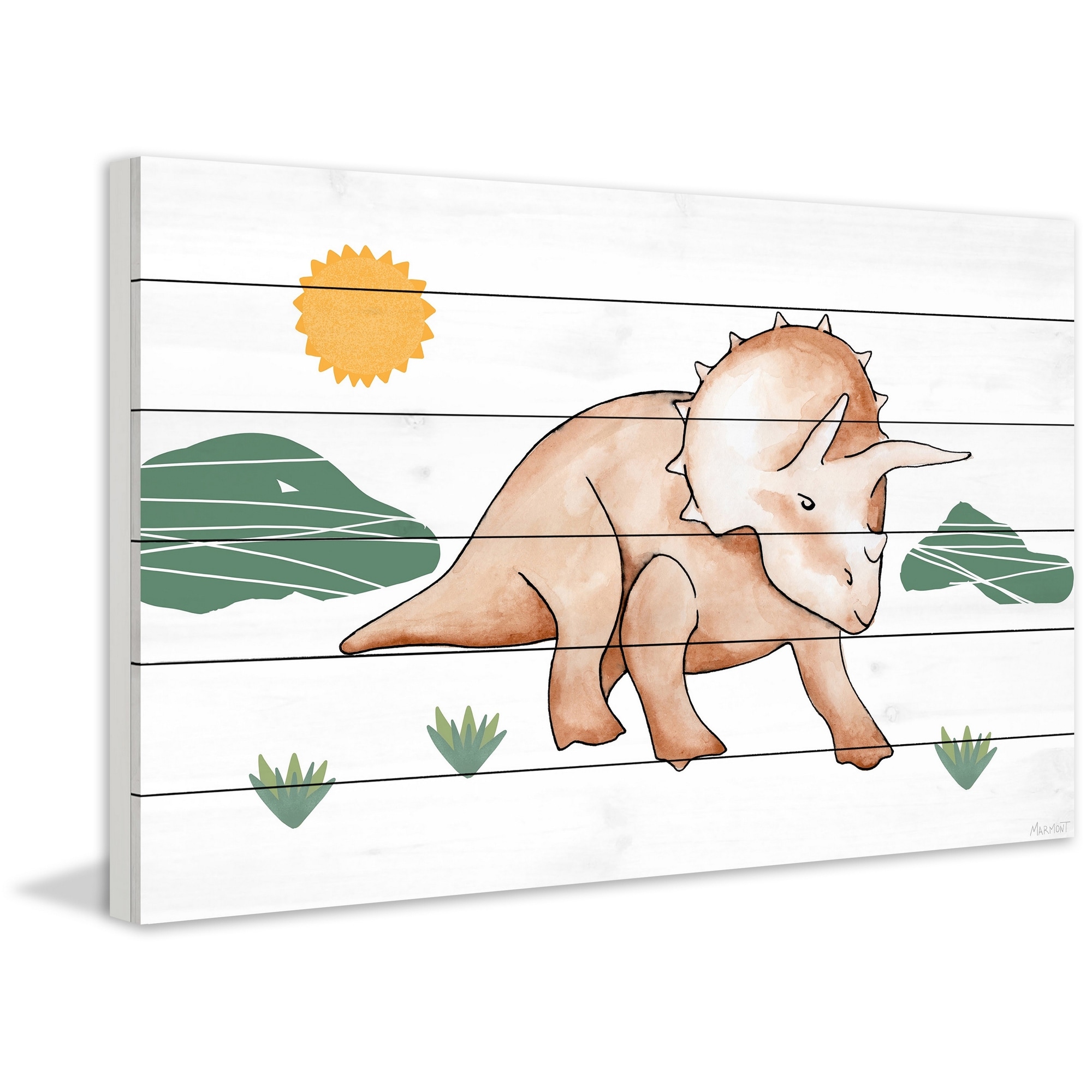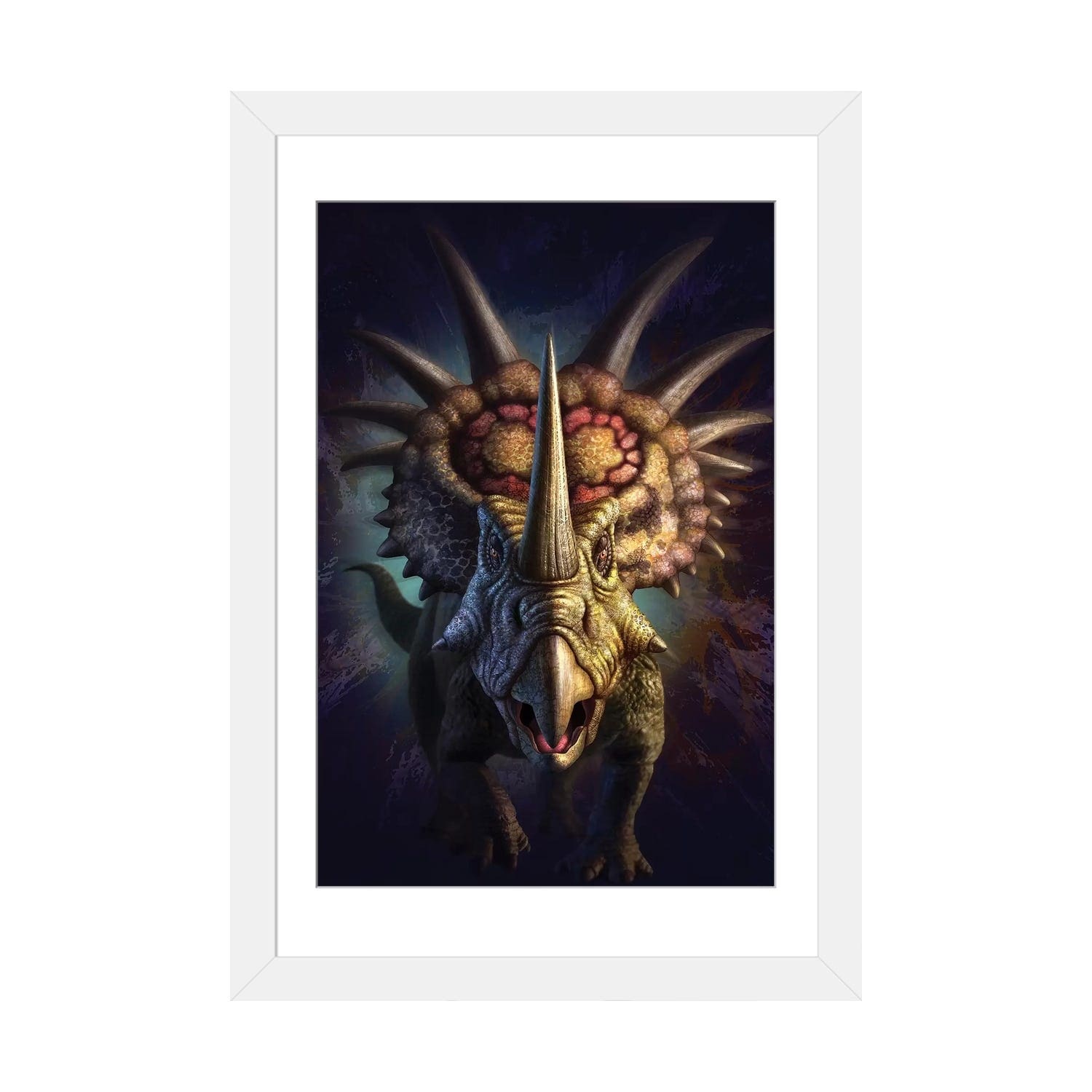 'Triple-Horned Dinosaur' Painting Print on White Wood