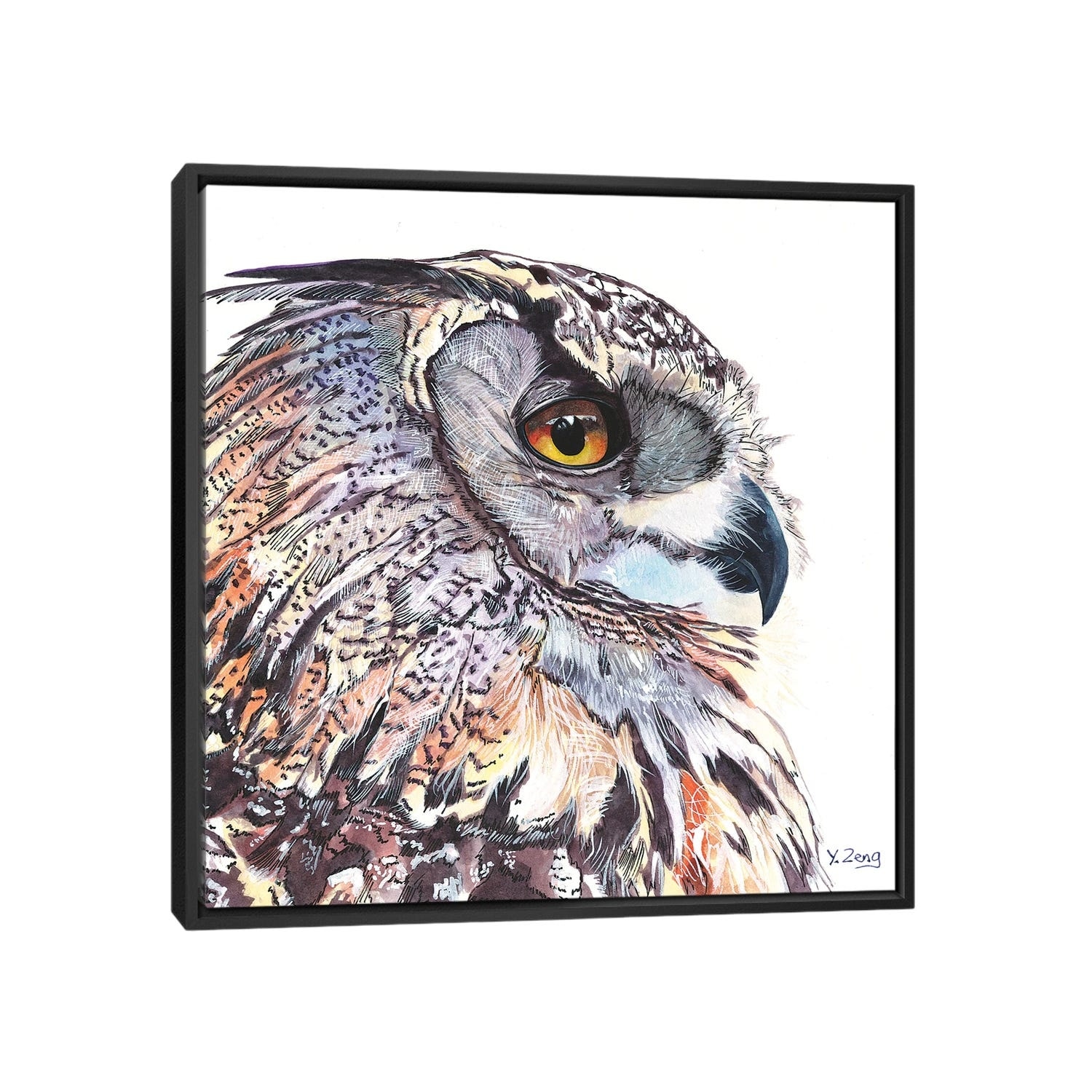 iCanvas "Great Horned Owl Portrait" by Yue Zeng Framed Canvas Print
