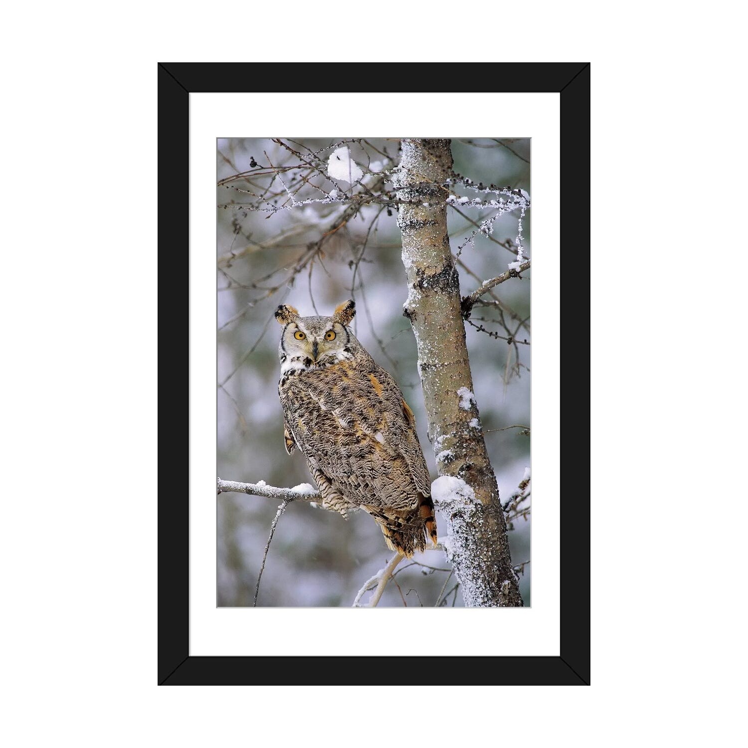 iCanvas "Great Horned Owl, Pale Form, Perching in A Snow-Covered Tree, British Columbia, Canada" by Tim Fitzharris