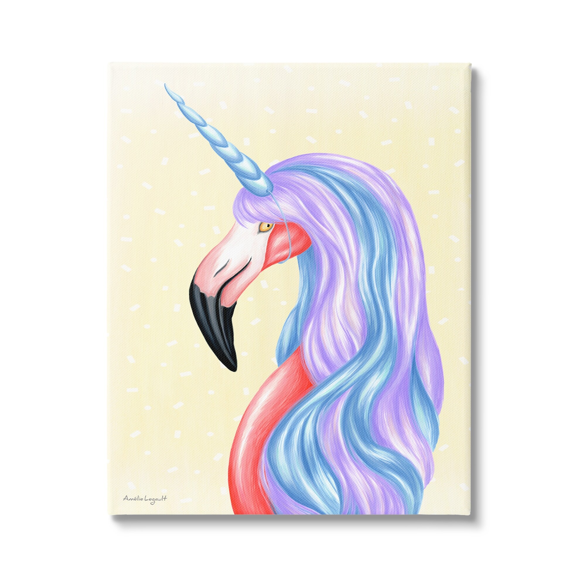 Stupell Industries Radiant Flamingo Bird Pastel Unicorn Horn Hair Canvas Wall Art, Design by Amelie Legault
