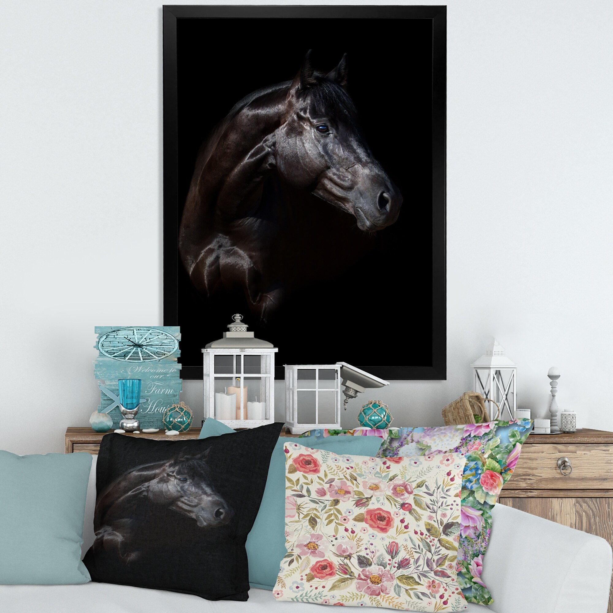 Designart "Portrait of a Light Blue Horse" Farmhouse Framed Canvas Wall Art Print