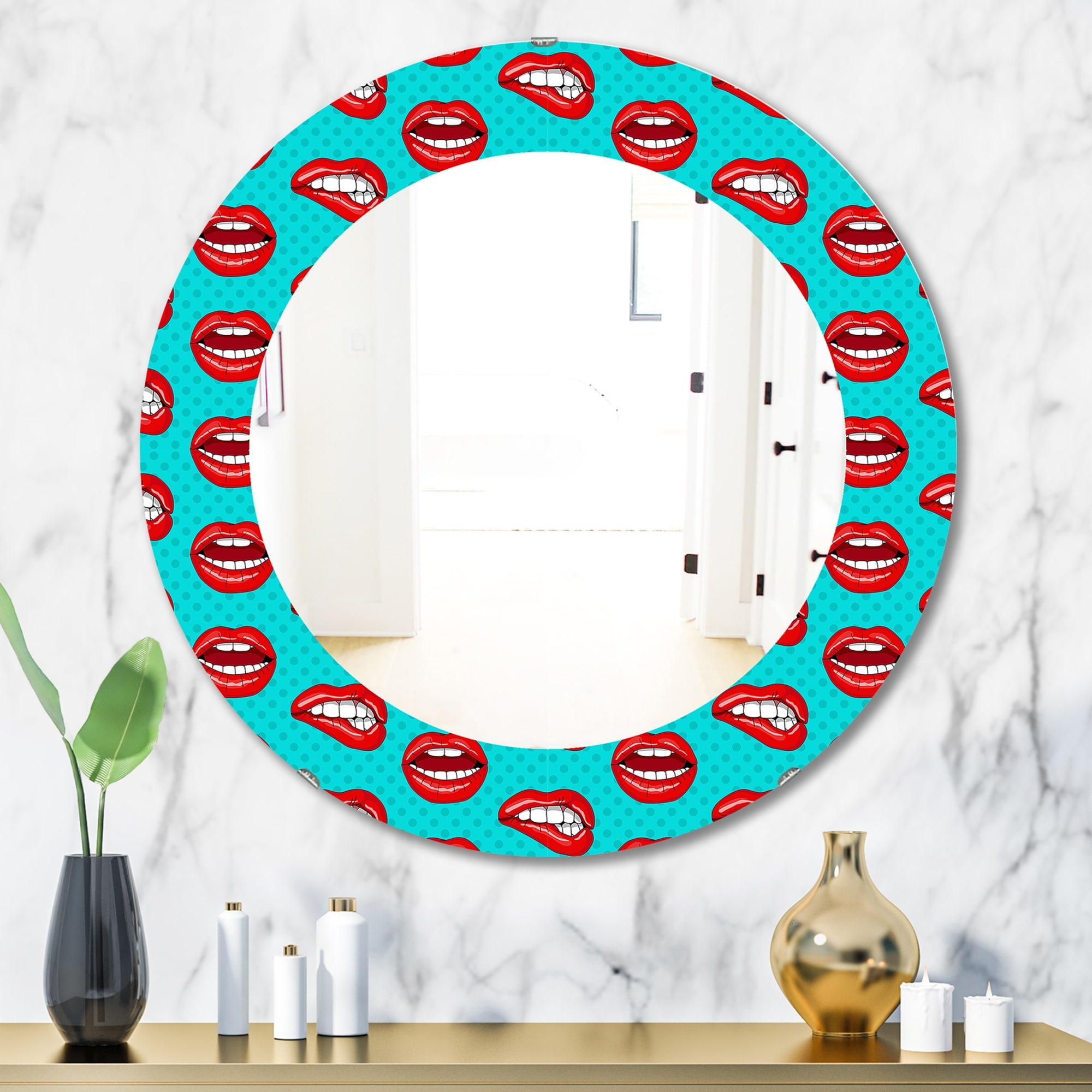 Designart 'Hot Lips' Printed Modern Mirror - Oval or Round Wall Mirror
