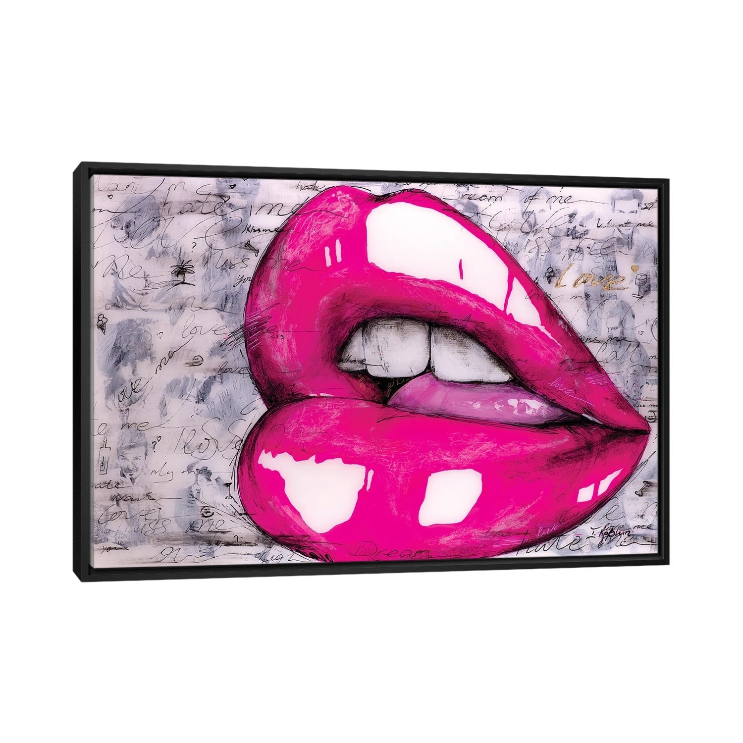 iCanvas "Hot Pink Lips" by Iness Kaplun Framed Canvas Print