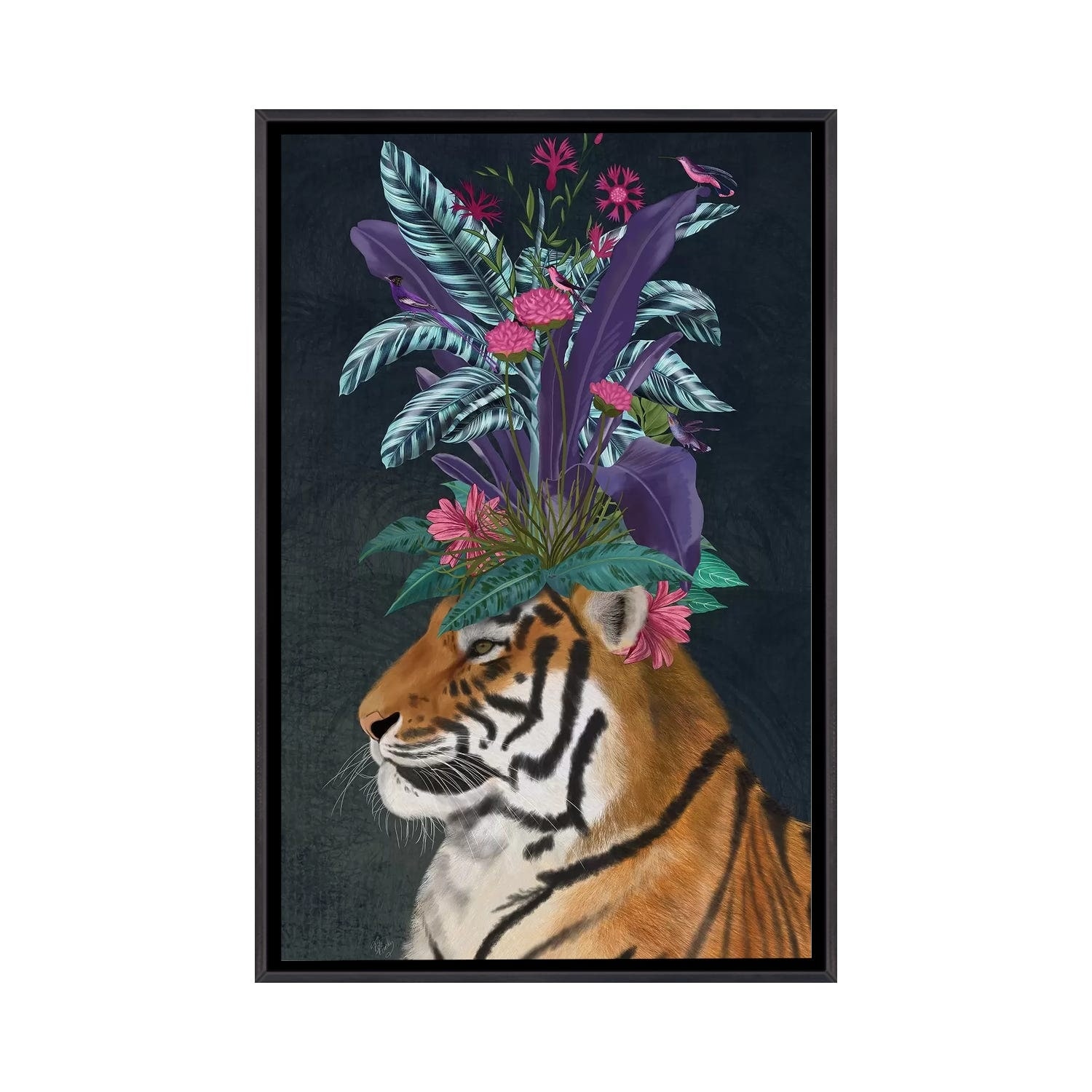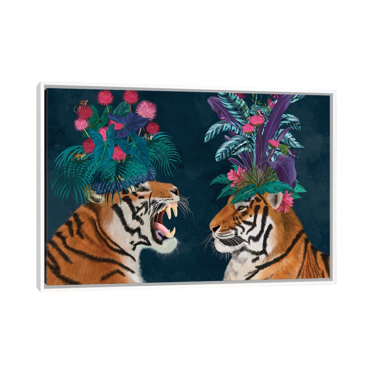 iCanvas "Hot House Tigers, Pair, Dark" by Fab Funky Framed Canvas Print