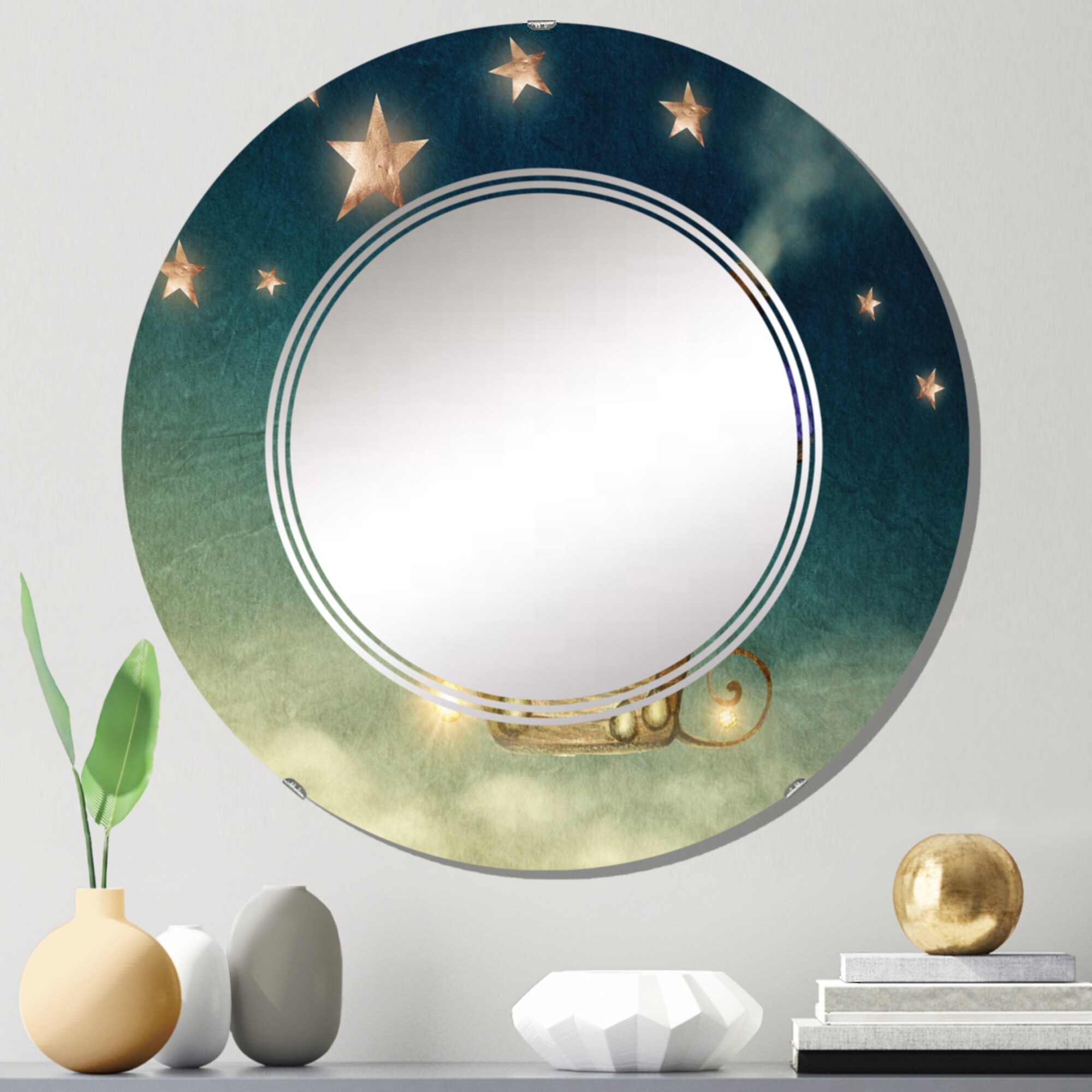 Designart 'Hot Air Balloon in Starry Sky' Printed Country Wall Mirror