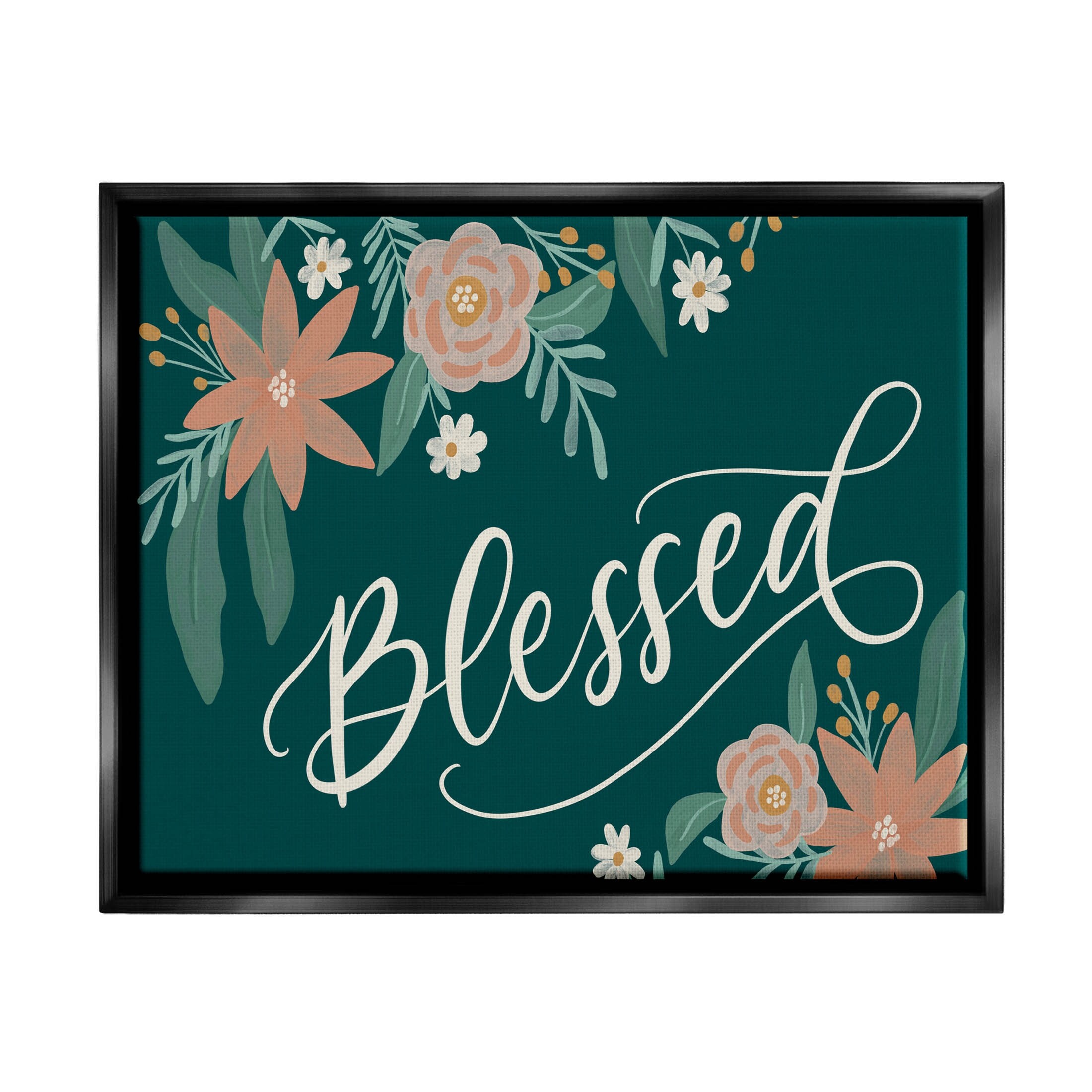 Stupell Blessed Floral Green Blossoms Floater Canvas Wall Art by Amanda Houston