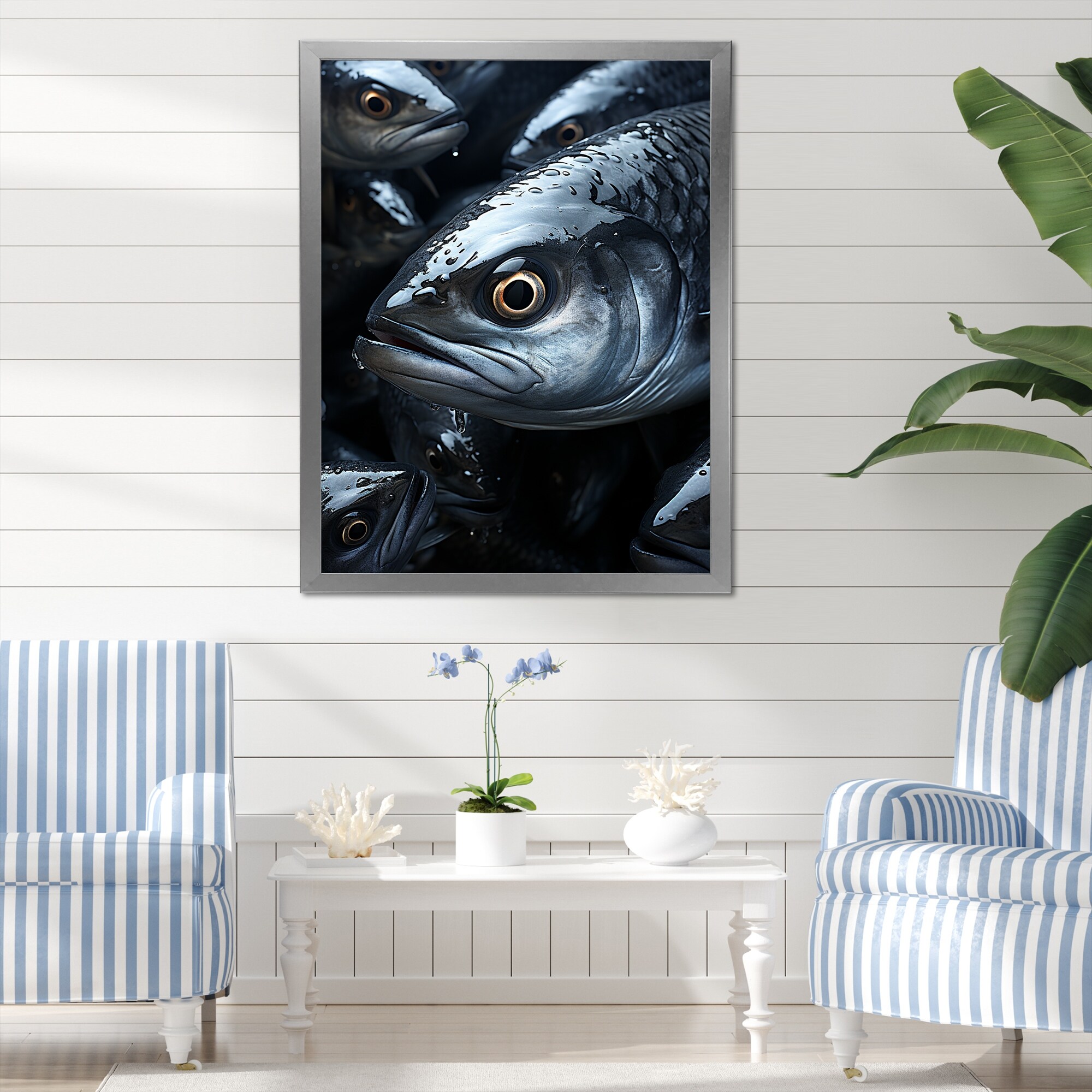 Designart "Fishing Monochrome Mackerel IV" Hunting & Fishing Framed Canvas Prints