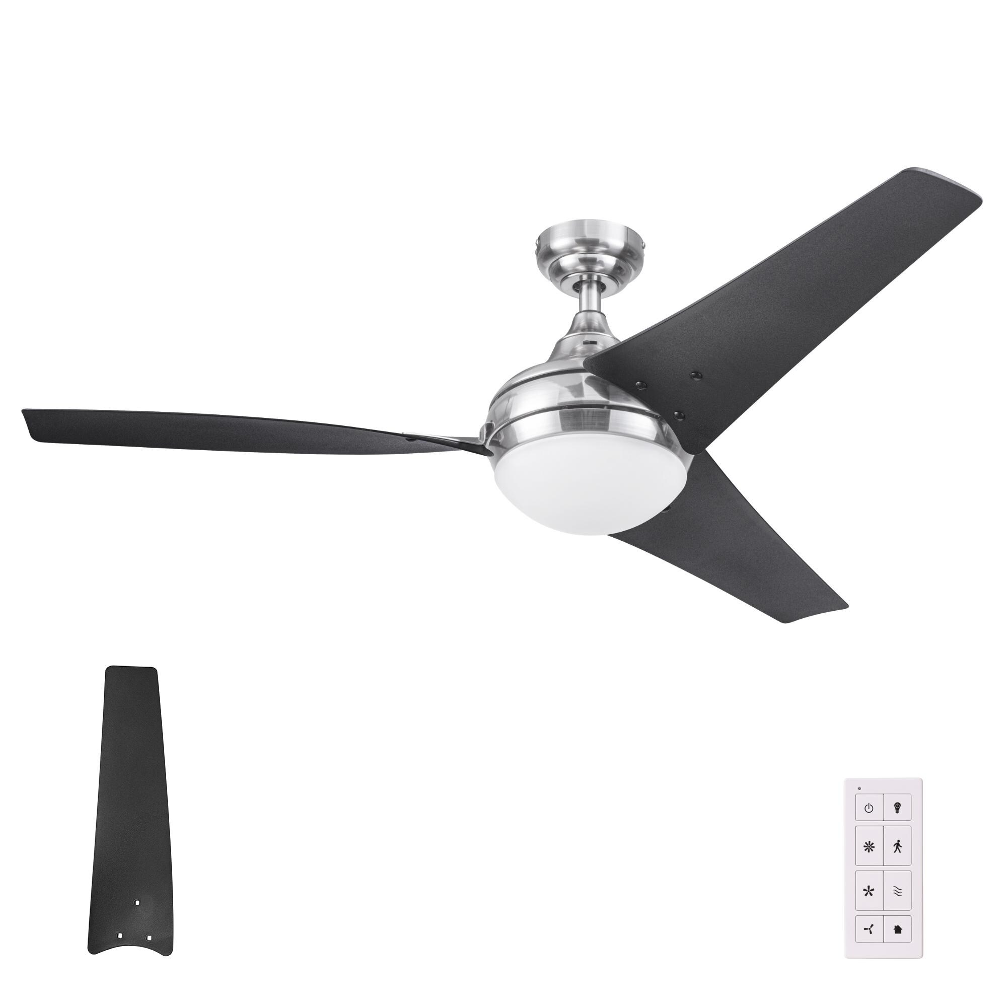 52 in. LED Indoor Brushed Chrome Ceiling Fan with Light Kit and Remote Control - 52.0 In. W X 13.2 In. H X 52.0 In. D