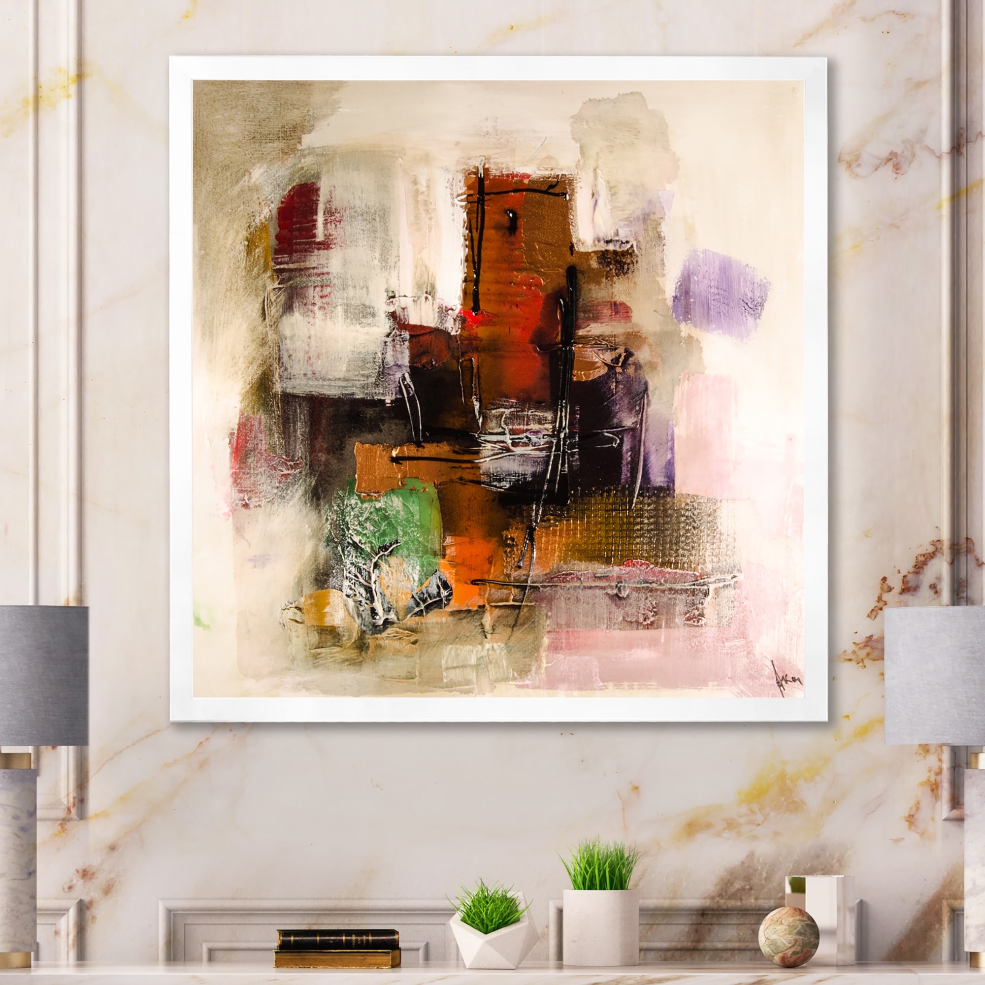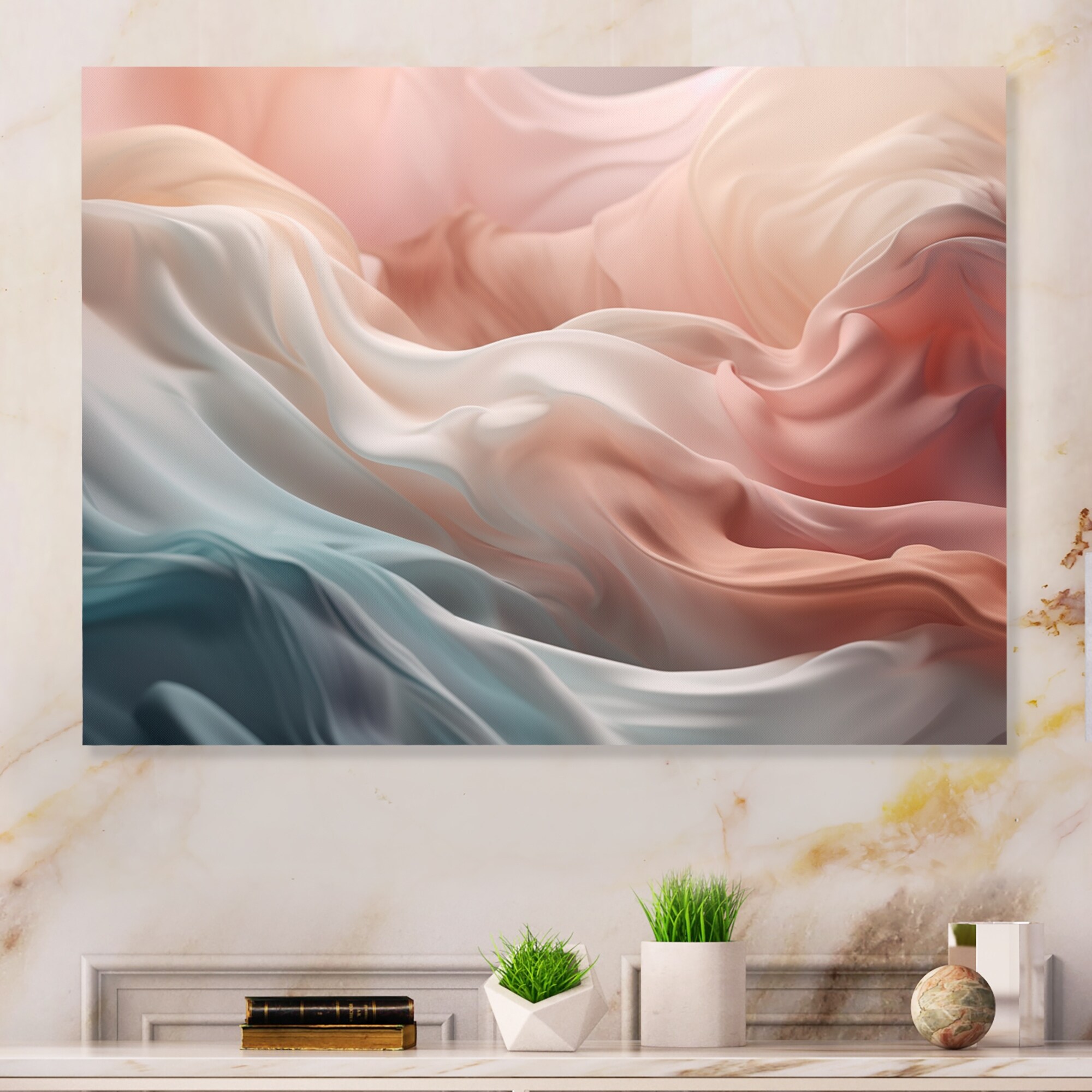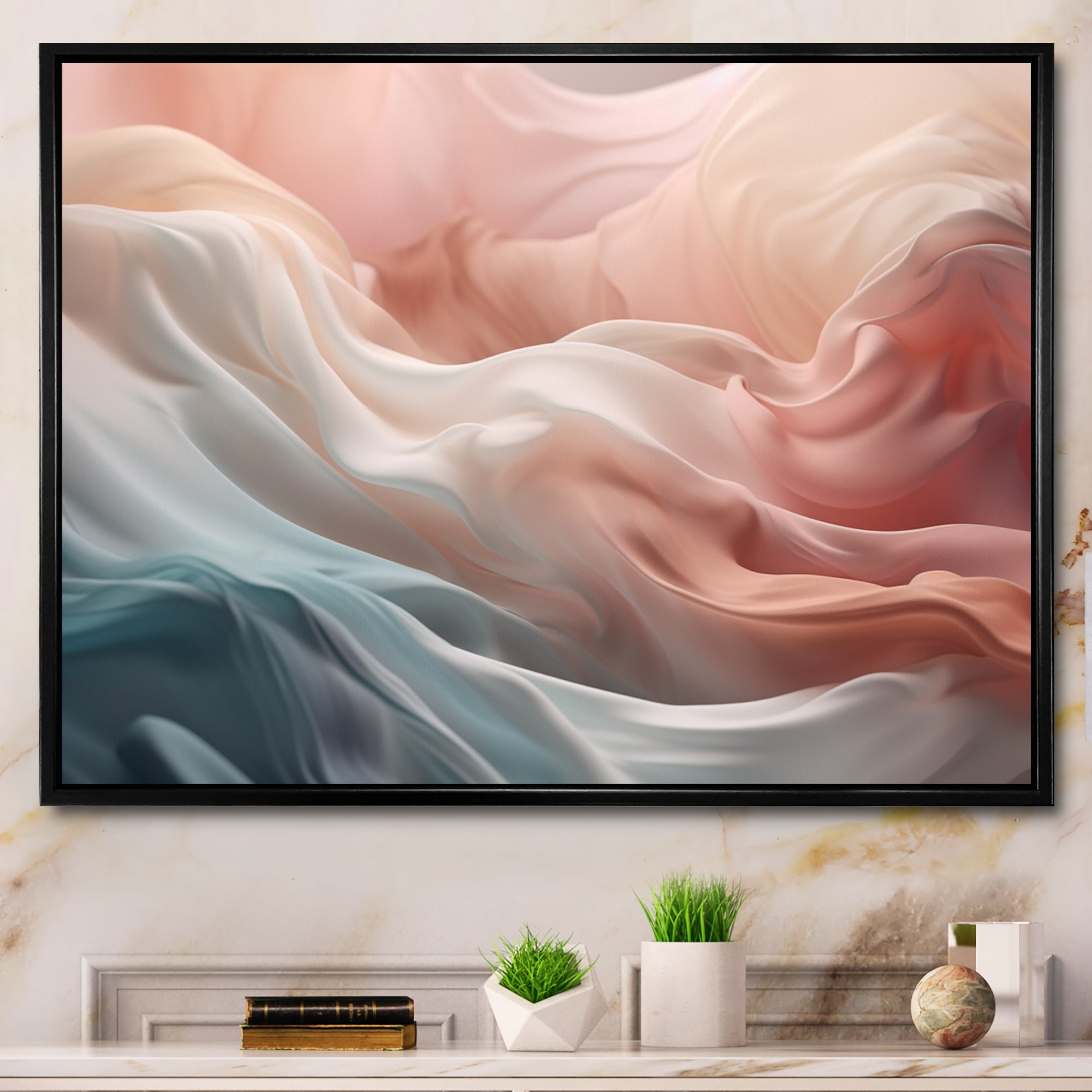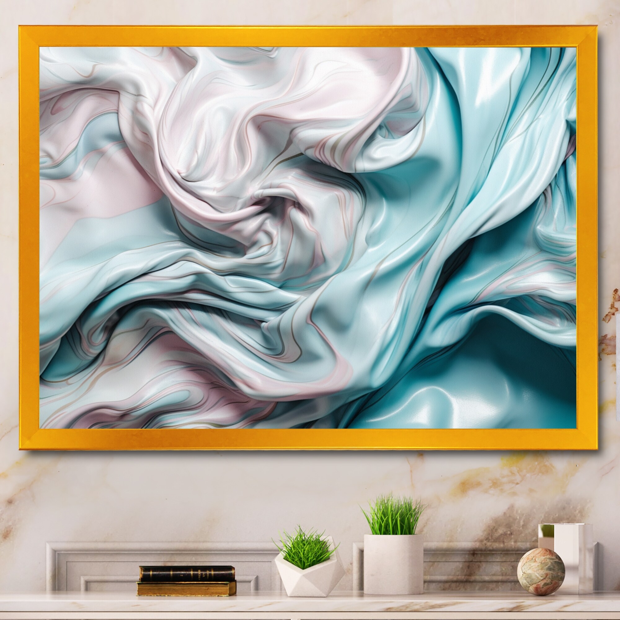 Designart "Pink Blue Dancing Colors Iii" Abstract Marble Framed Canvas Wall Art
