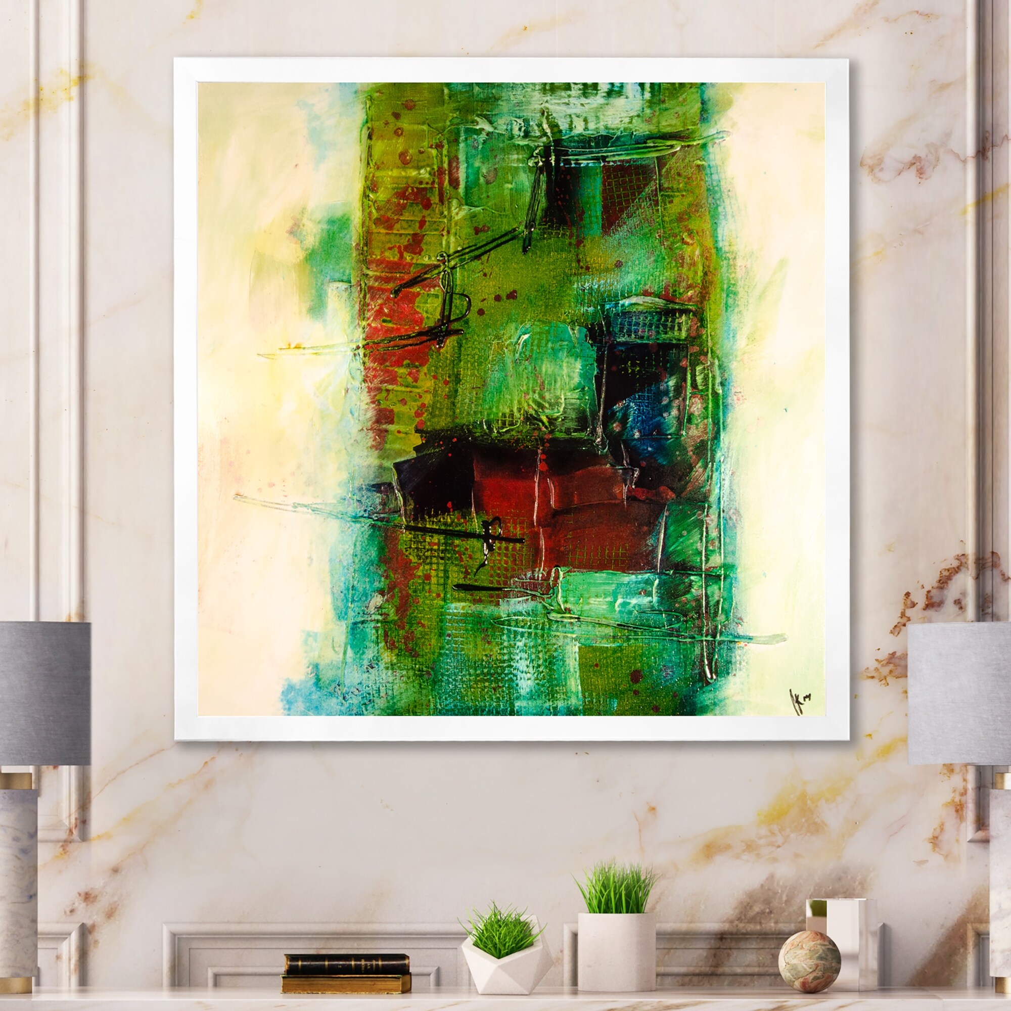 Designart "Abstract Energetic Color Dance III" Modern Framed Art Print