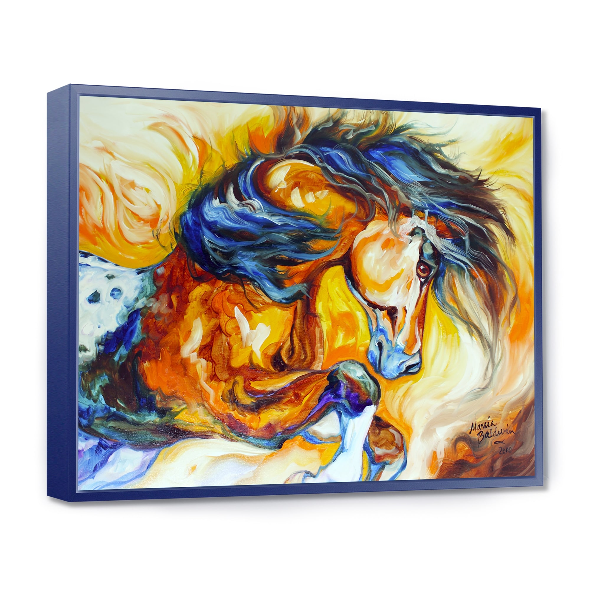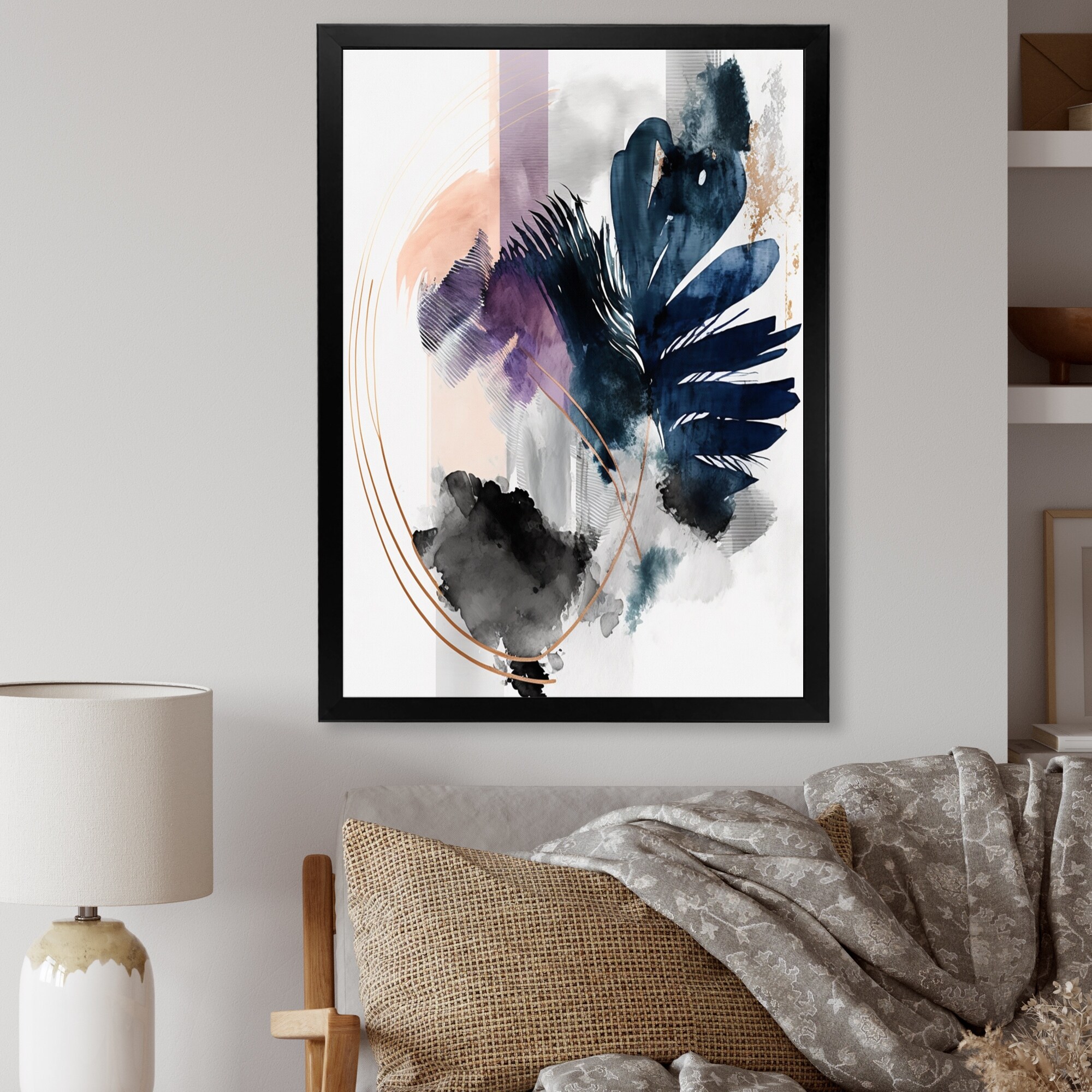 Designart "Orange Blue Dancing Colors Iv" Minimalism Framed Wall Decor
