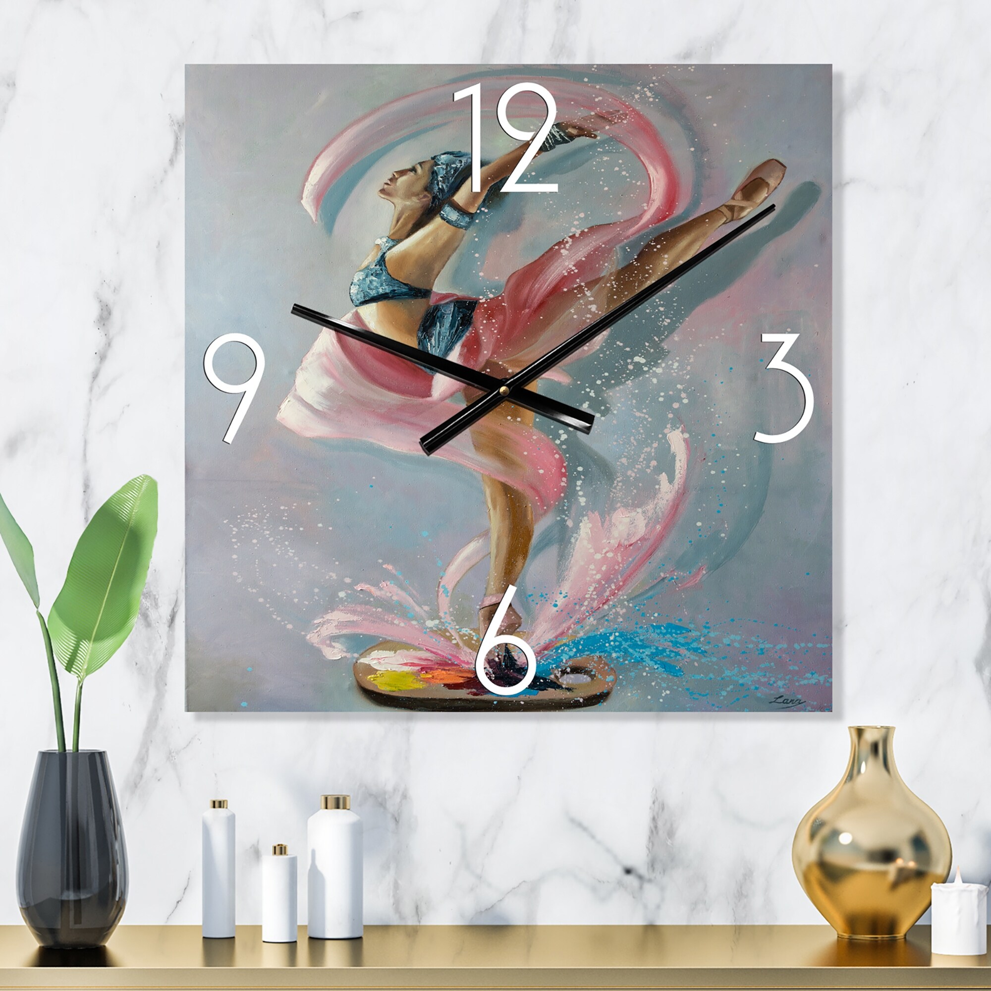 Designart 'Graciously Dancing Woman in Pink Drapes' Traditional Large Wall Clock
