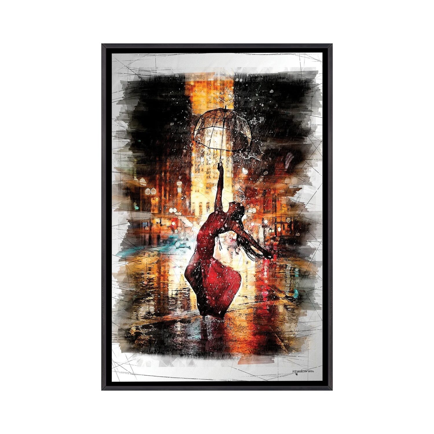 iCanvas "Rainy Night Dance" by Johan Marais Framed