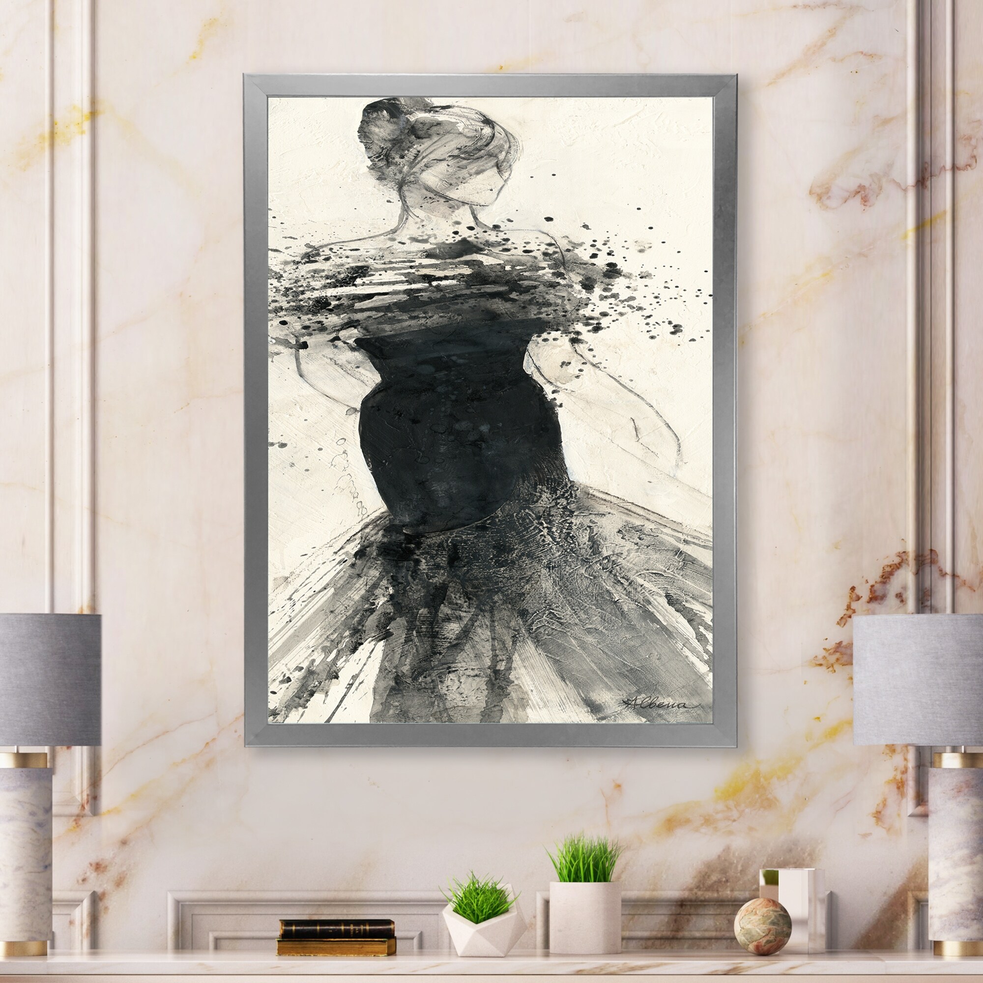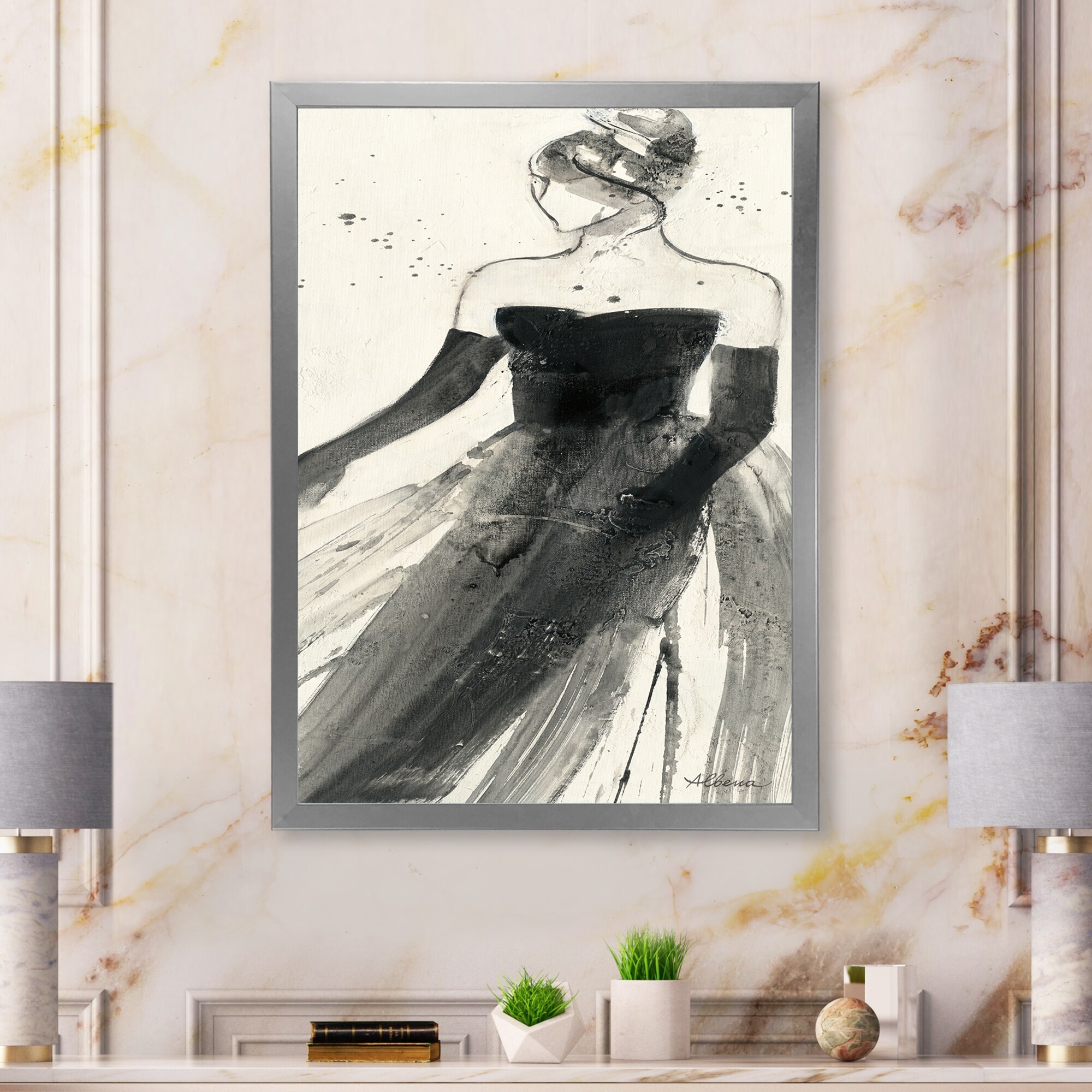 Designart "Glam Dancing I" Fashion Figures Premium Framed Art Print