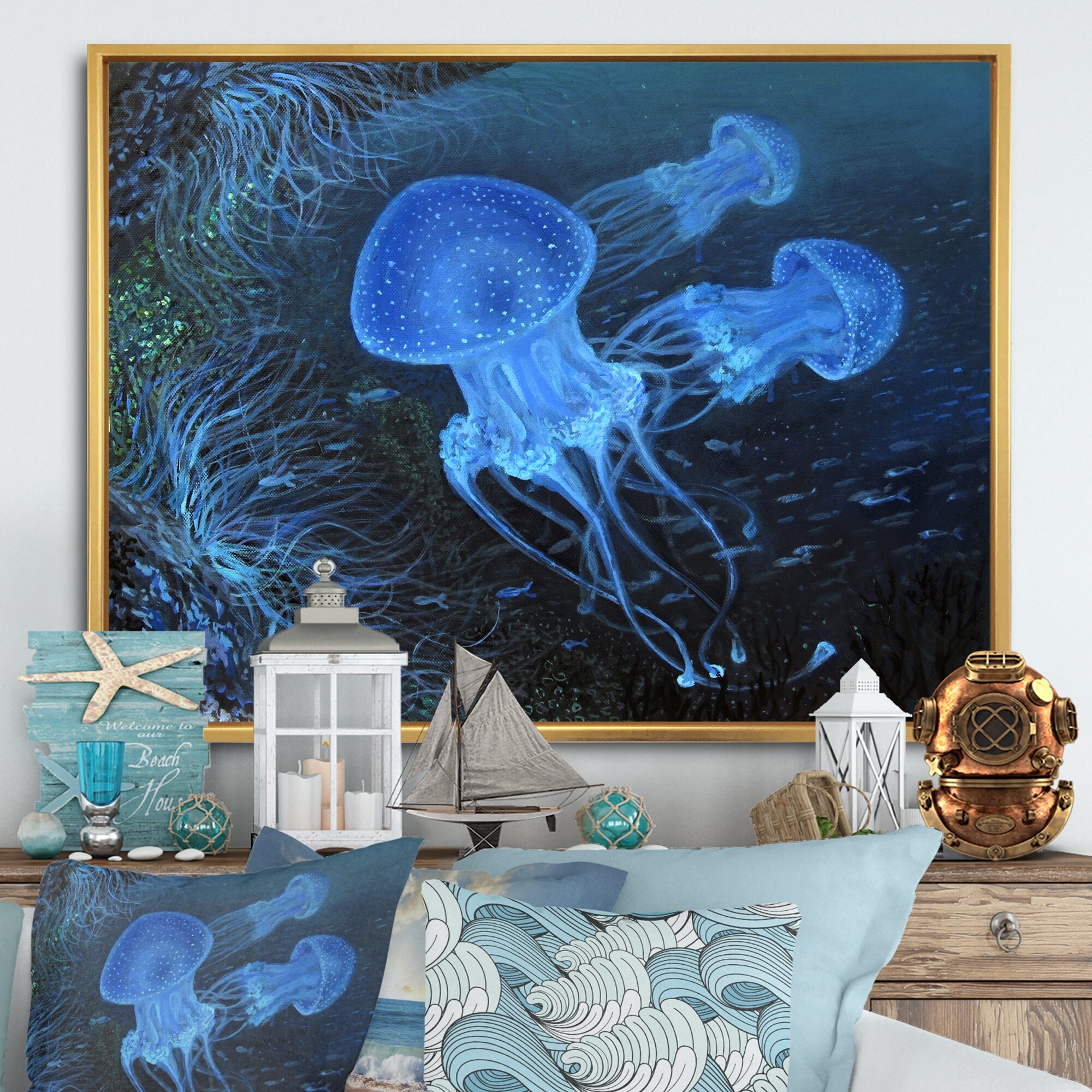 Designart "Dance Under Water" Nautical & Coastal Framed Canvas artwork
