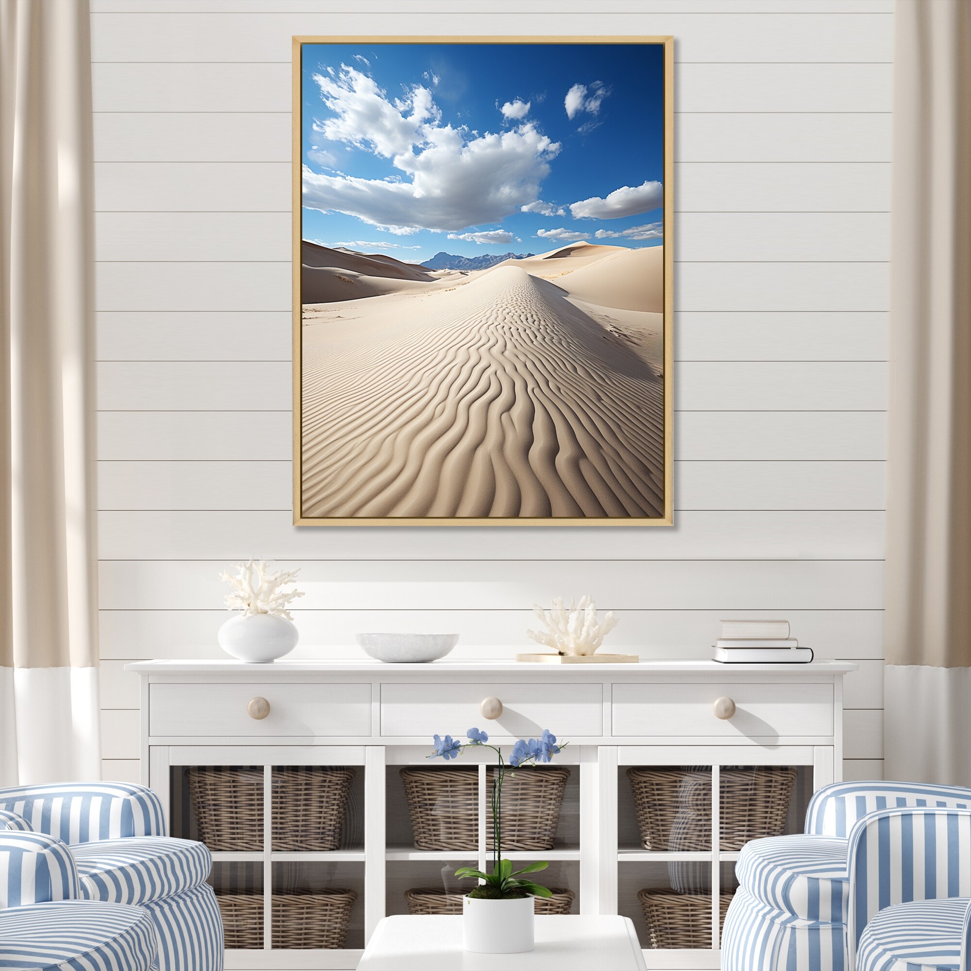 Designart "Beach Dune Dance II" Coastal Beach Sand Framed Canvas Print