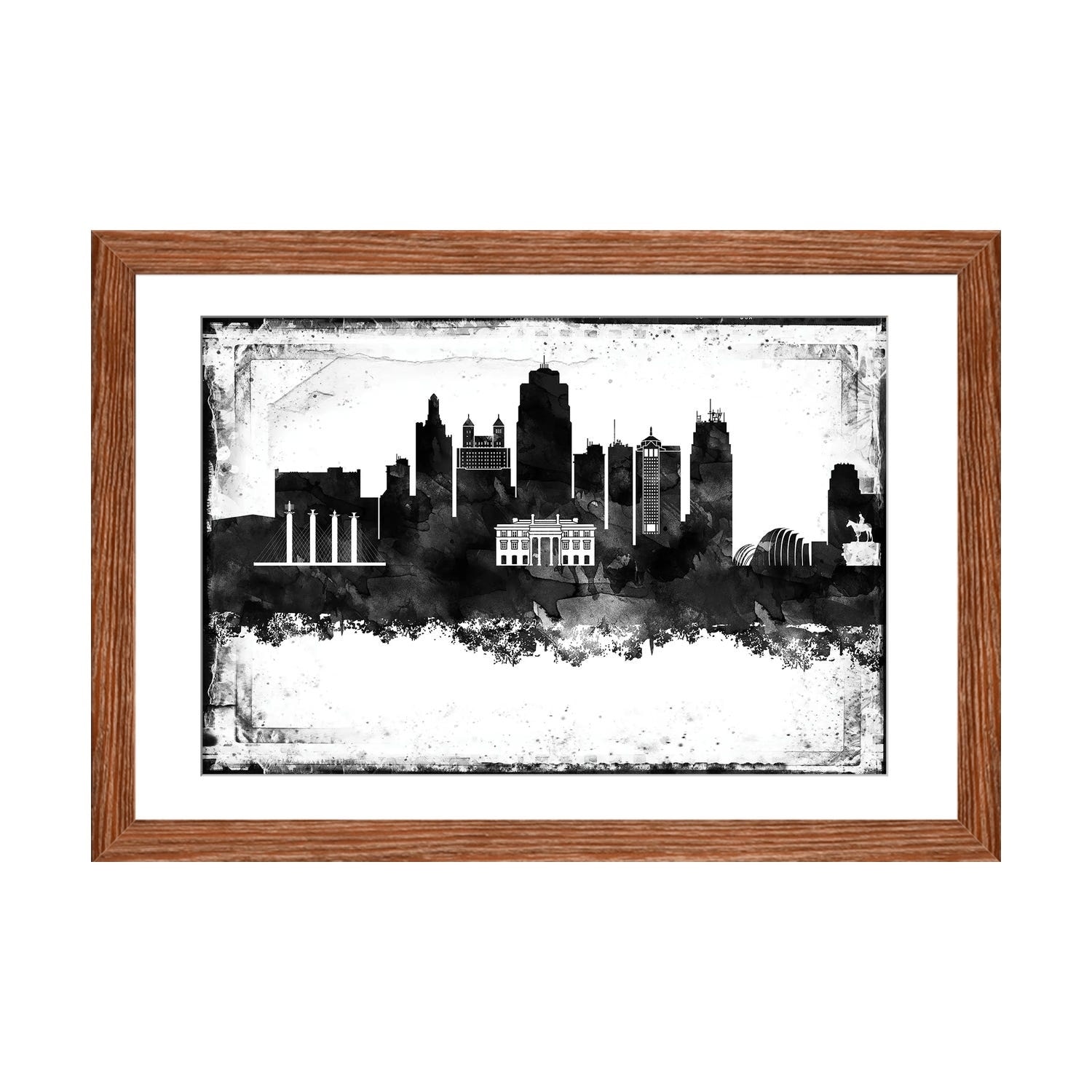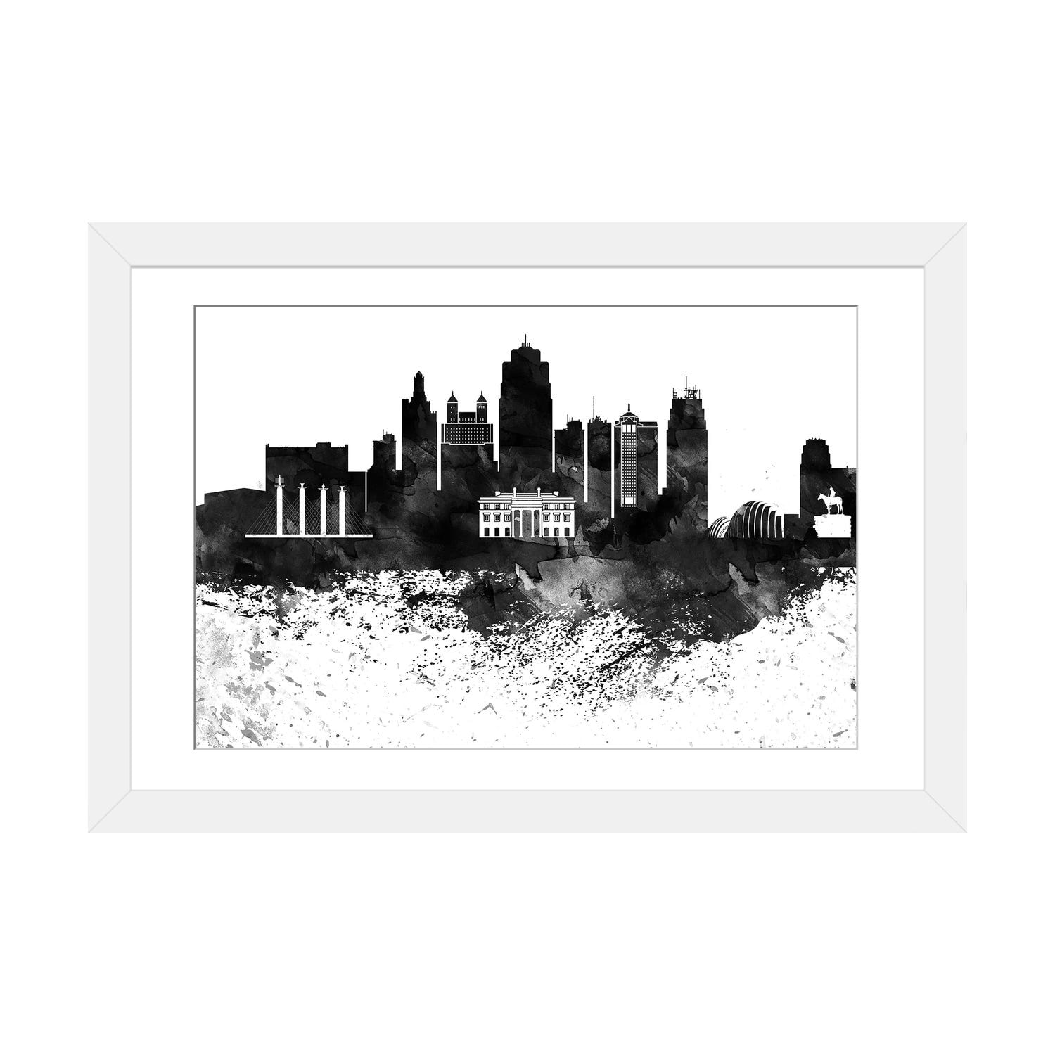 iCanvas "Kansas City Black And White Framed Skylines" by WallDecorAddict