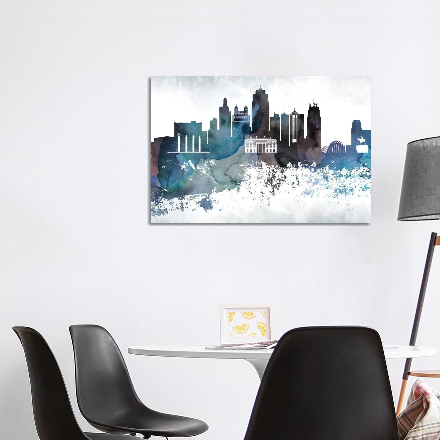 iCanvas "Kansas City Black & White Drops Skyline" by WallDecorAddict