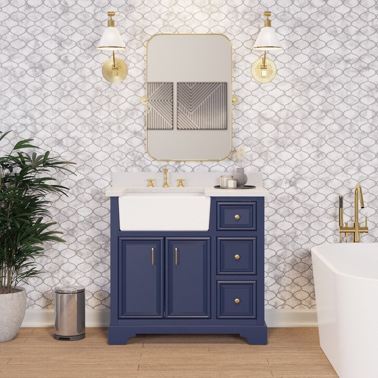 KitchenBathCollection Zelda 36" Farmhouse Bathroom Vanity with Quartz Top