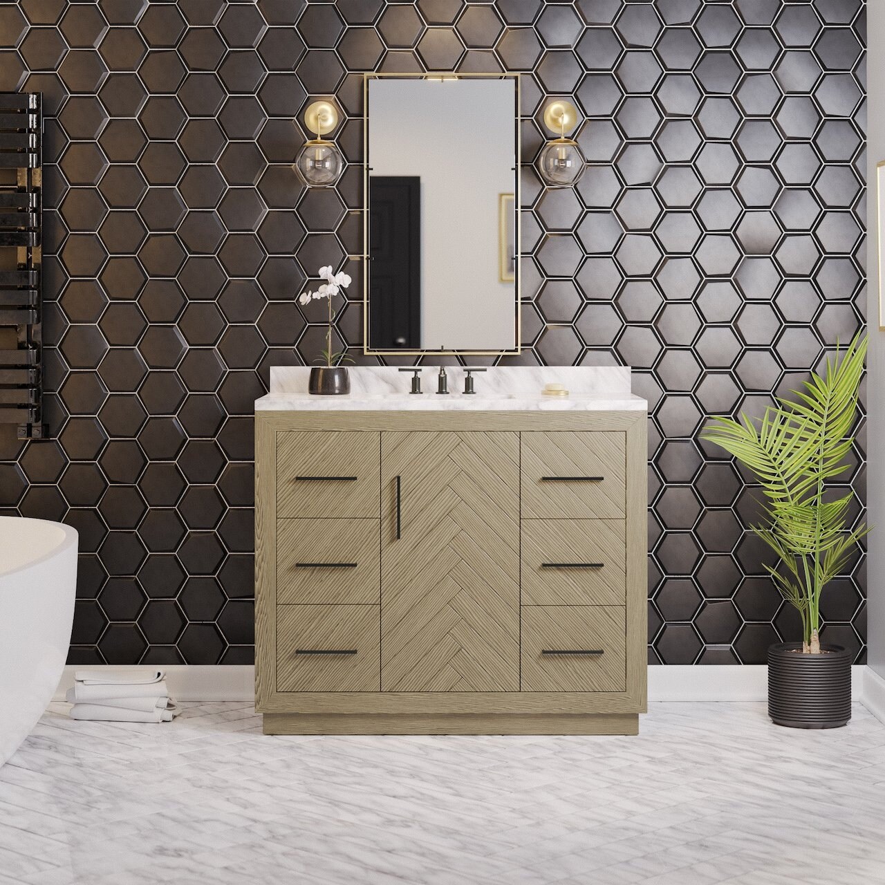 KitchenBathCollection Hailey 42" Bathroom Vanity with Carrara Marble Top