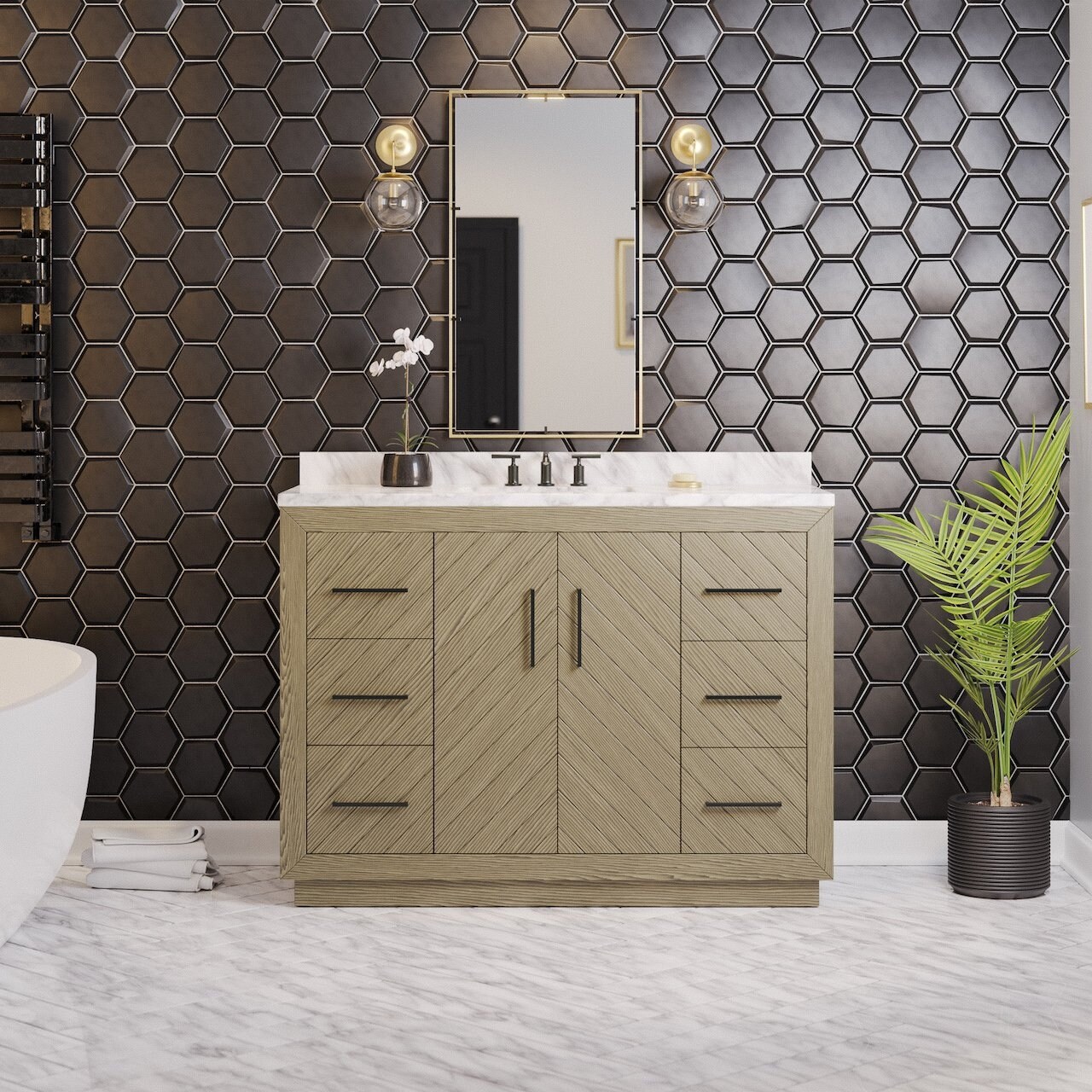 KitchenBathCollection Hailey 48" Bathroom Vanity with Carrara Marble Top