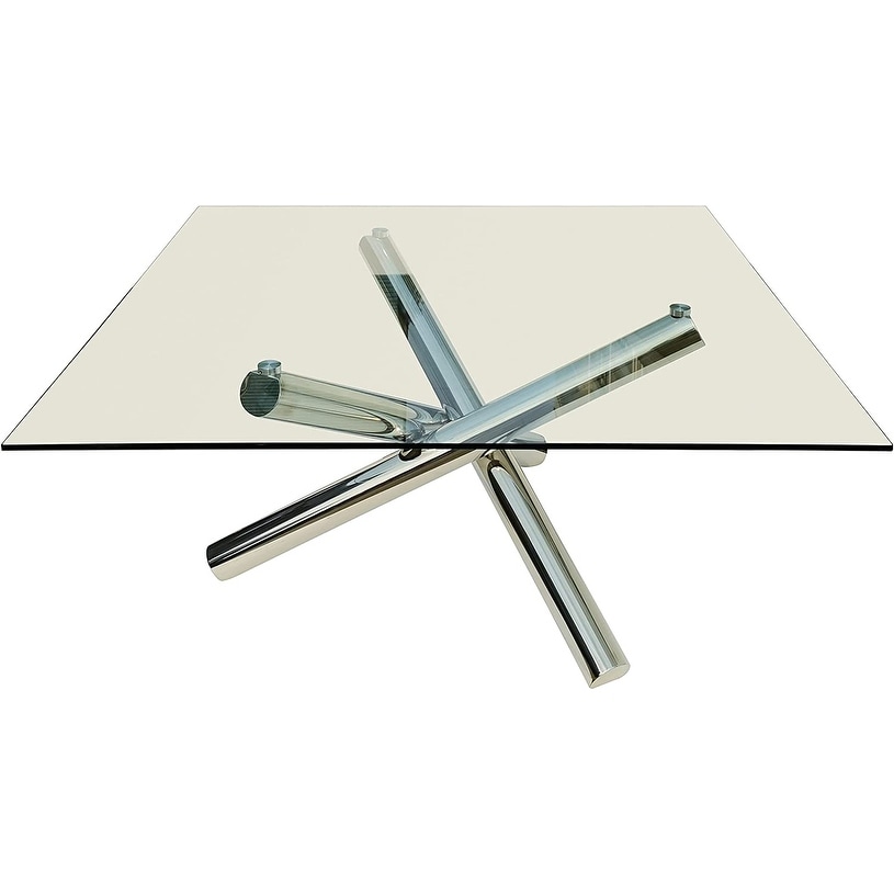 Square Glass Top Dining Table with Chrome Base, White Lacquer - clear