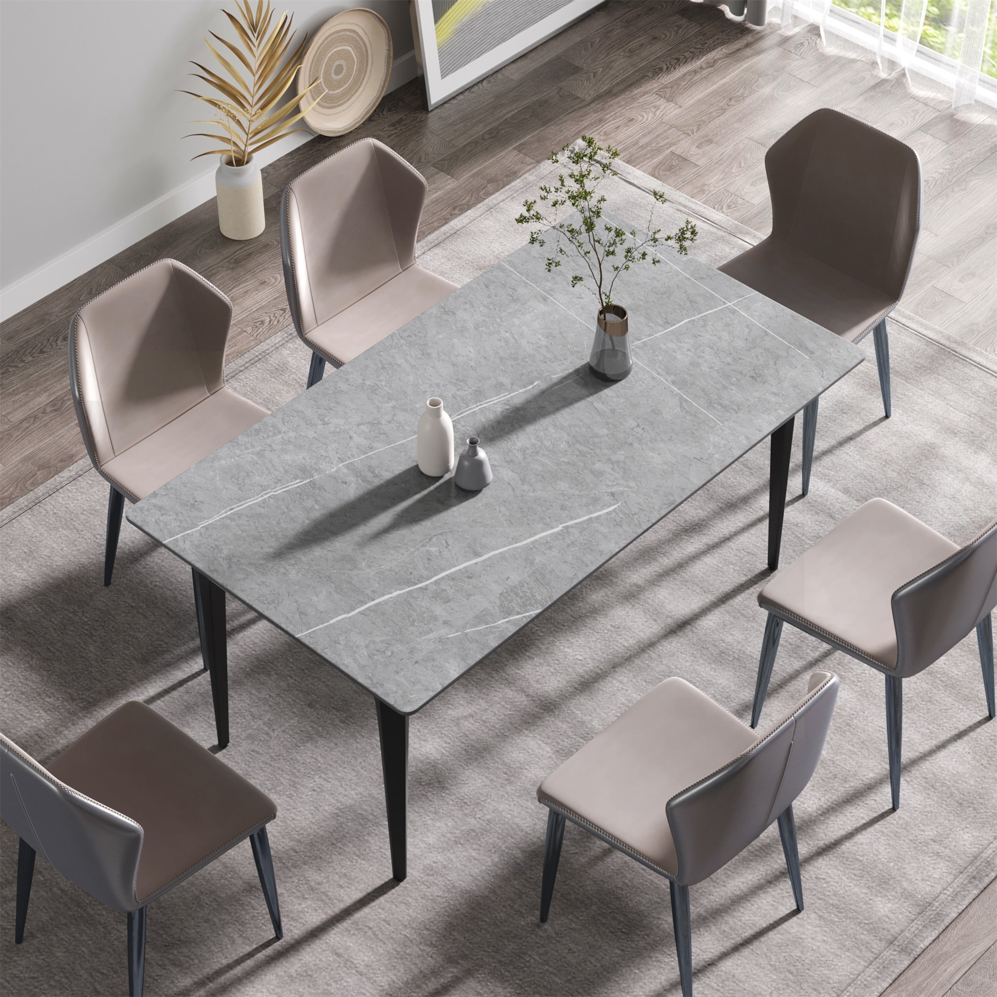 71'' Modern Sintered Stone Dining Table Gray Rectangular Tabletop Dining Tables with Carbon Steel Base