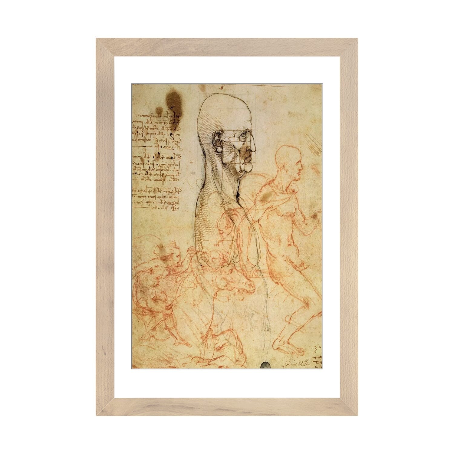 iCanvas "Torso of a Man in Profile, the Head Squared for Proportion, and Sketches of Two Horsemen" by Leonardo da Vinci Framed