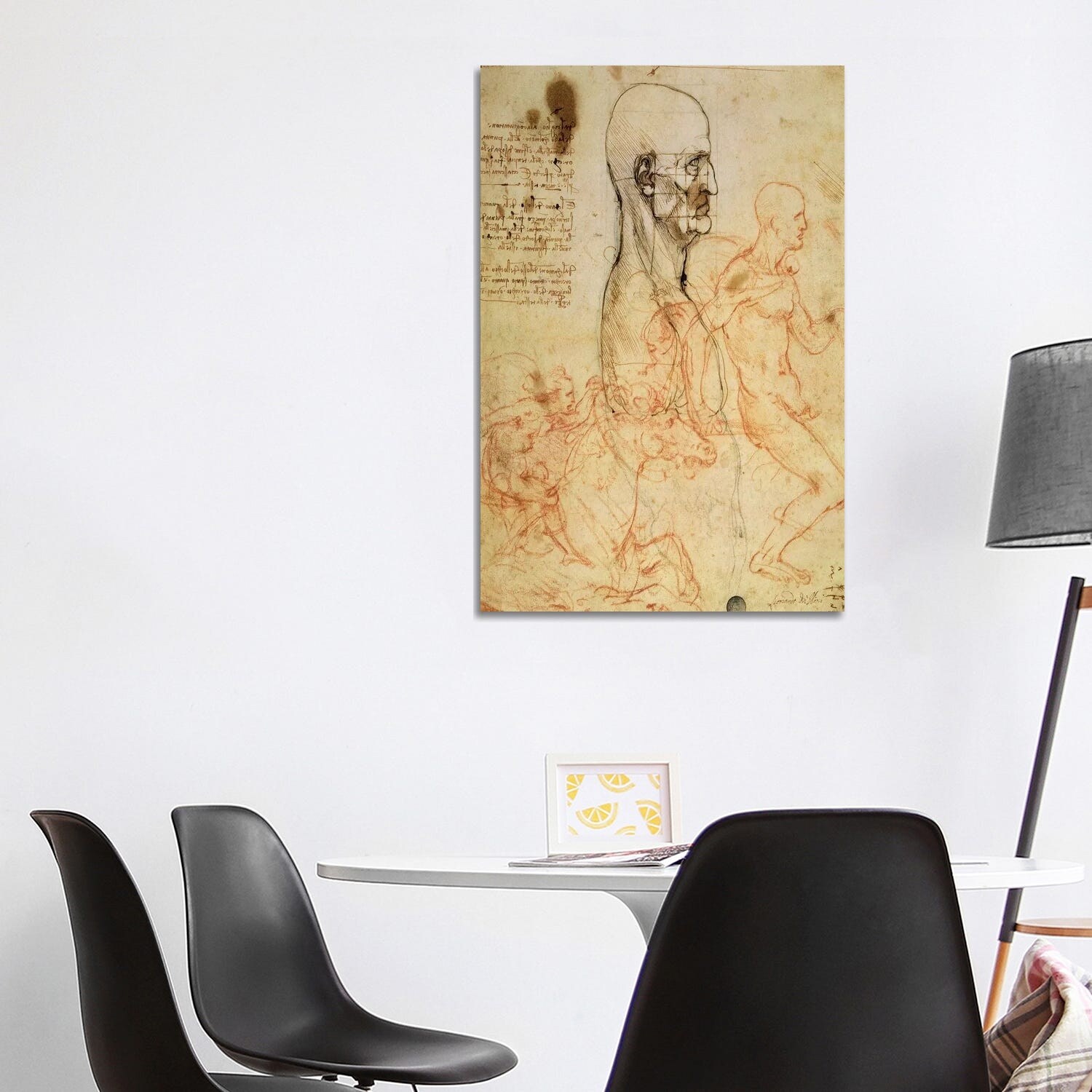 iCanvas "Torso of a Man in Profile, the Head Squared for Proportion, and Sketches of Two Horsemen" by Leonardo da Vinci